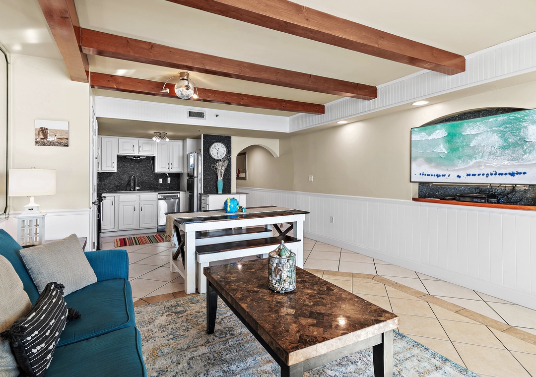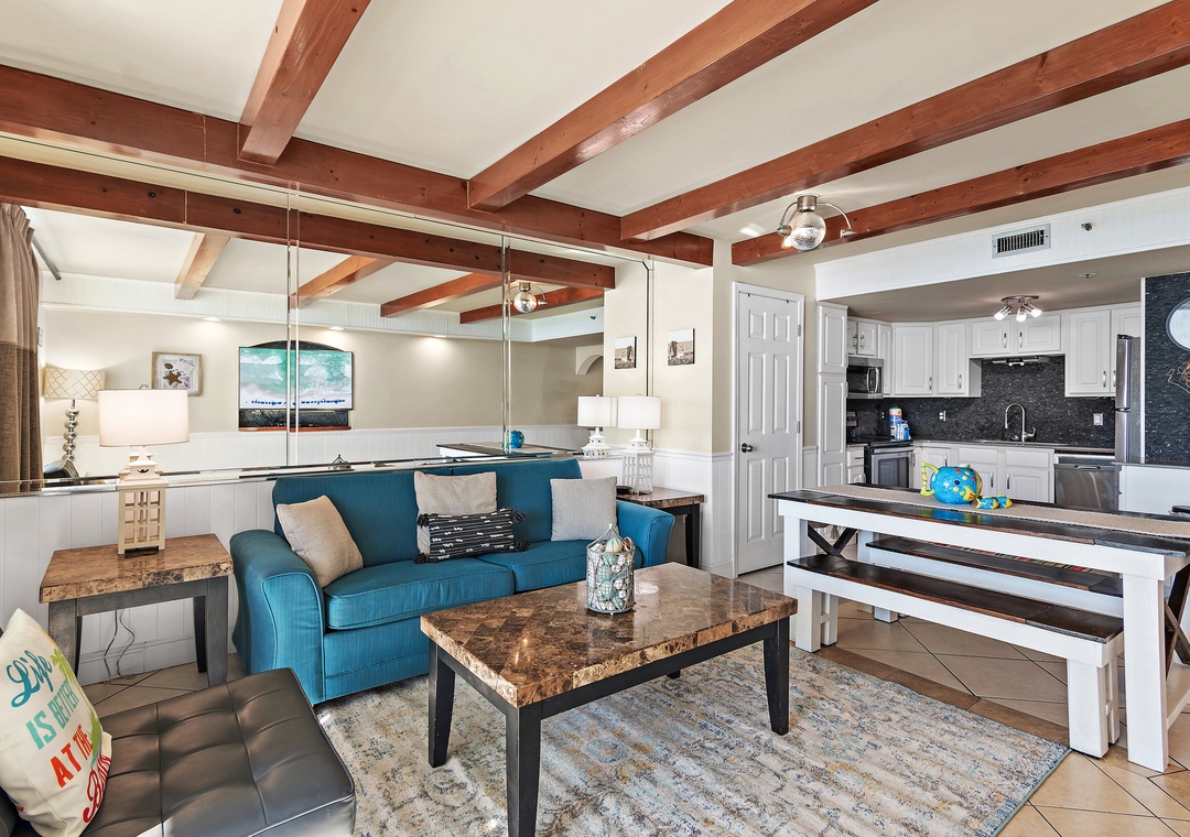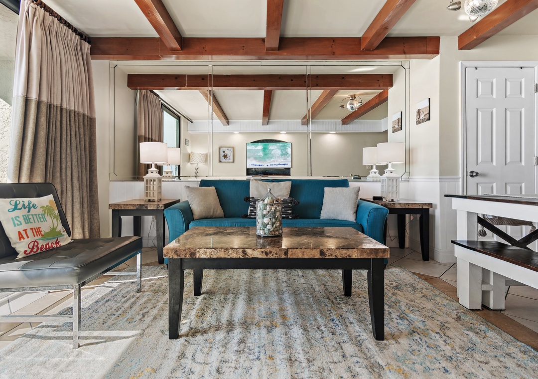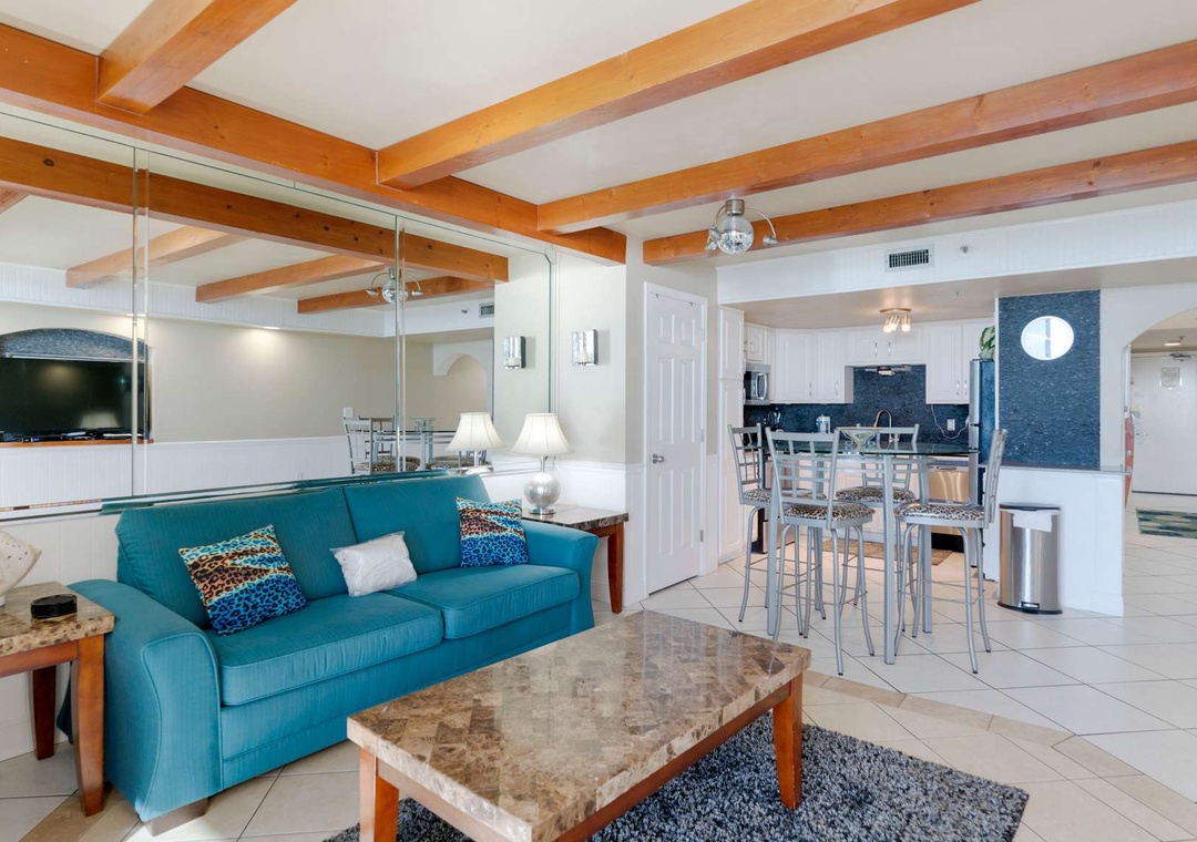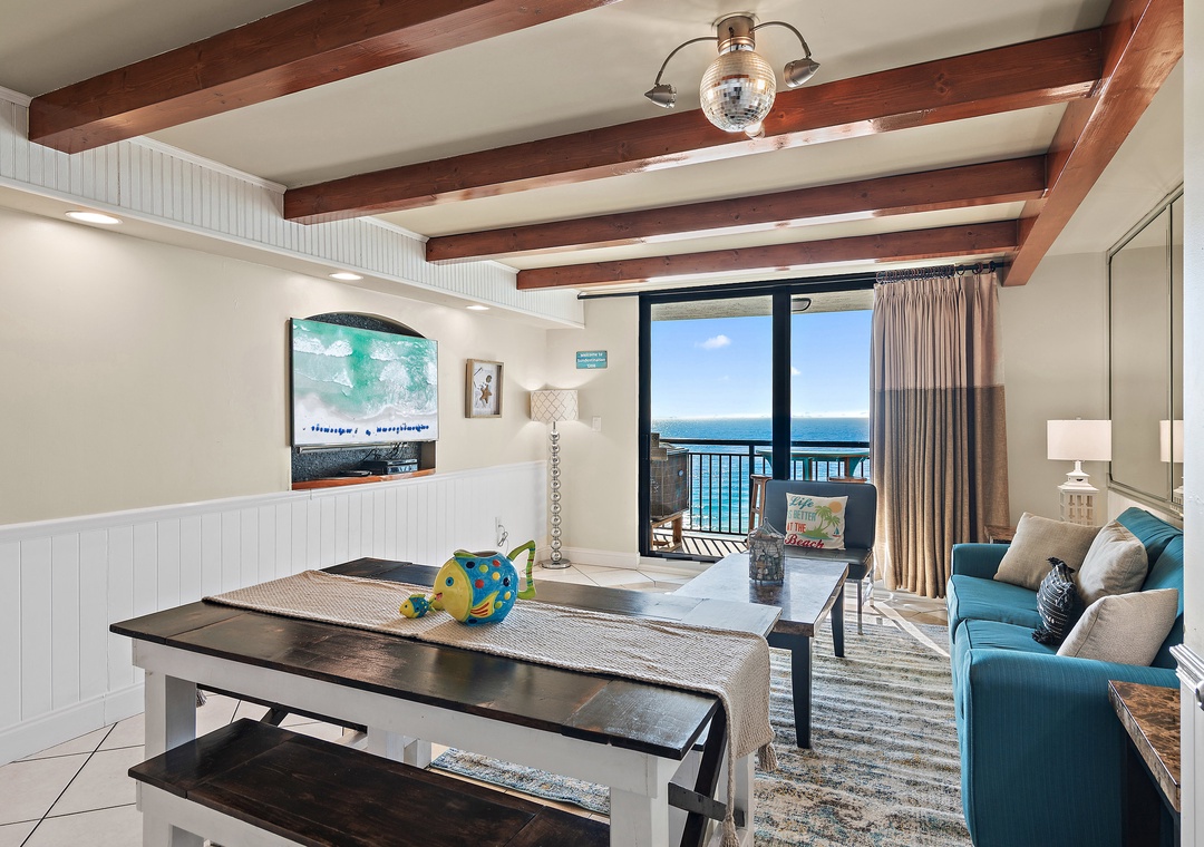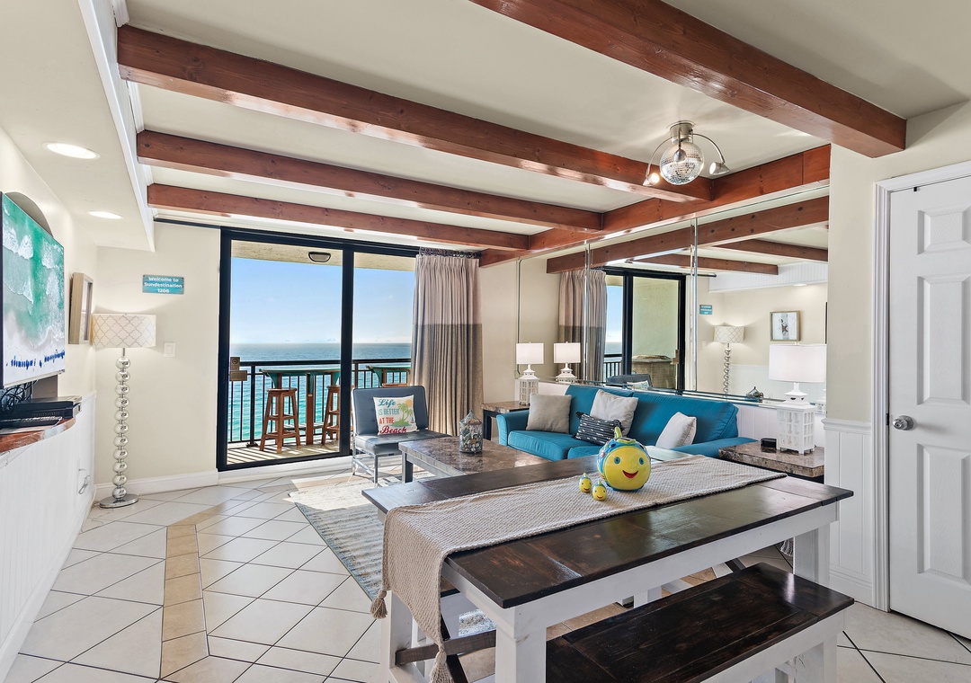 Welcome to The SunDestination 1206 — a beautifully appointed one-bedroom, one-and-a-half-bathroom condo that comfortably sleeps up to six guests. Step inside and instantly feel at ease in this charming space, complete with cozy furnishings and stylish touches throughout. Kick back in the inviting living room and catch your favorite game on the flat-screen TV, or gather around the dining table for a meal, a board game, or some quality conversation. The fully equipped kitchen makes it easy to whip up anything from quick beach snacks to home-cooked dinners. After a day of sun and surf, unwind with a drink on your private balcony and watch the sunset light up the Gulf. For sleeping arrangements, choose from a plush king-sized bed in the master suite (with its flat-screen TV and en suite bathroom), twin bunks tucked in the hallway, or the comfy sleeper sofa in the living area. Whether you're here for relaxation or adventure, The SunDestination is the perfect place to make unforgettable memories by the sea.