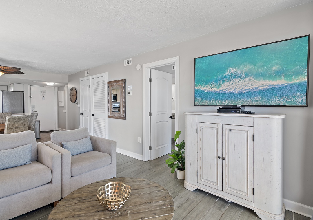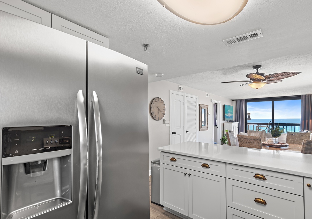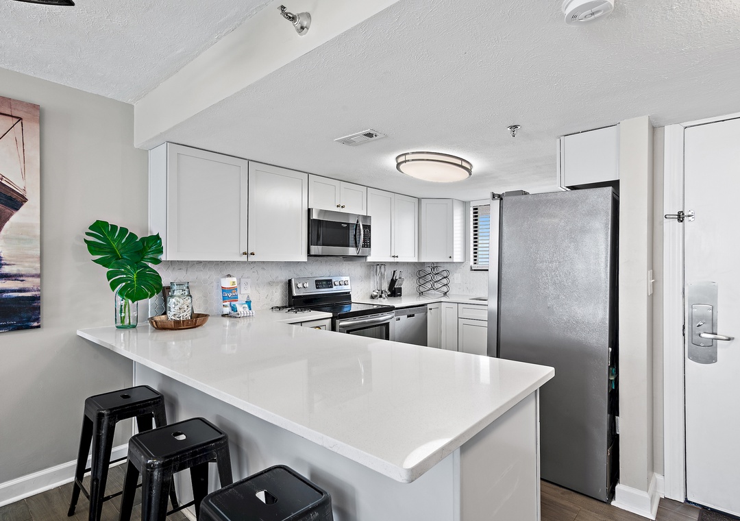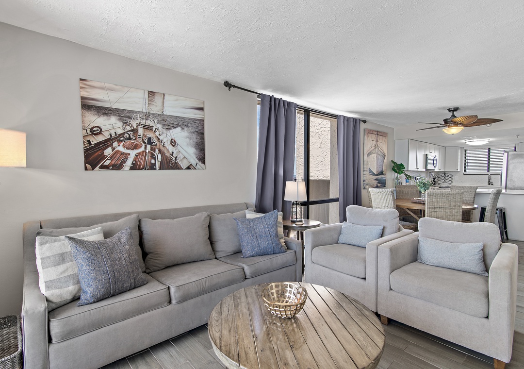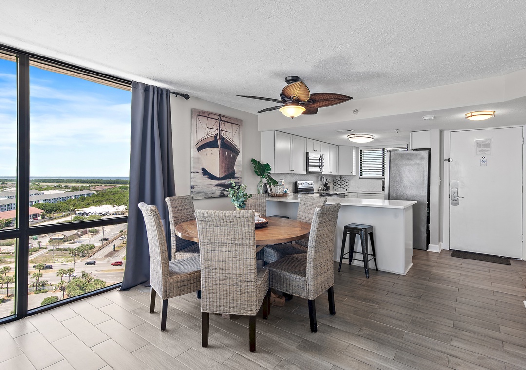 Welcome to SunDestin 1818, your perfect beach getaway in the heart of Destin, Florida—just steps from the sugar-white sands and sparkling turquoise waters of the Gulf of Mexico! This top-floor penthouse retreat offers the best of both worlds: sweeping city views through floor-to-ceiling windows (you might even catch a dazzling fireworks show!) and tranquil Gulf vistas from your private balcony, accessible from both the living room and master bedroom. You may even spot dolphins playing in the surf! Inside, you'll enjoy panoramic water views from every window, and a fully updated interior designed for comfort and style. The modern kitchen is fully equipped with everything you need to dine in—including an air fryer and Instant Pot for convenient cooking. Whether you're sipping wine on the balcony at sunset, enjoying a family meal, or just unwinding after a day at the beach, this space is designed to help you relax and feel at home. Walk to Destin's Favorite Beachfront Dining!