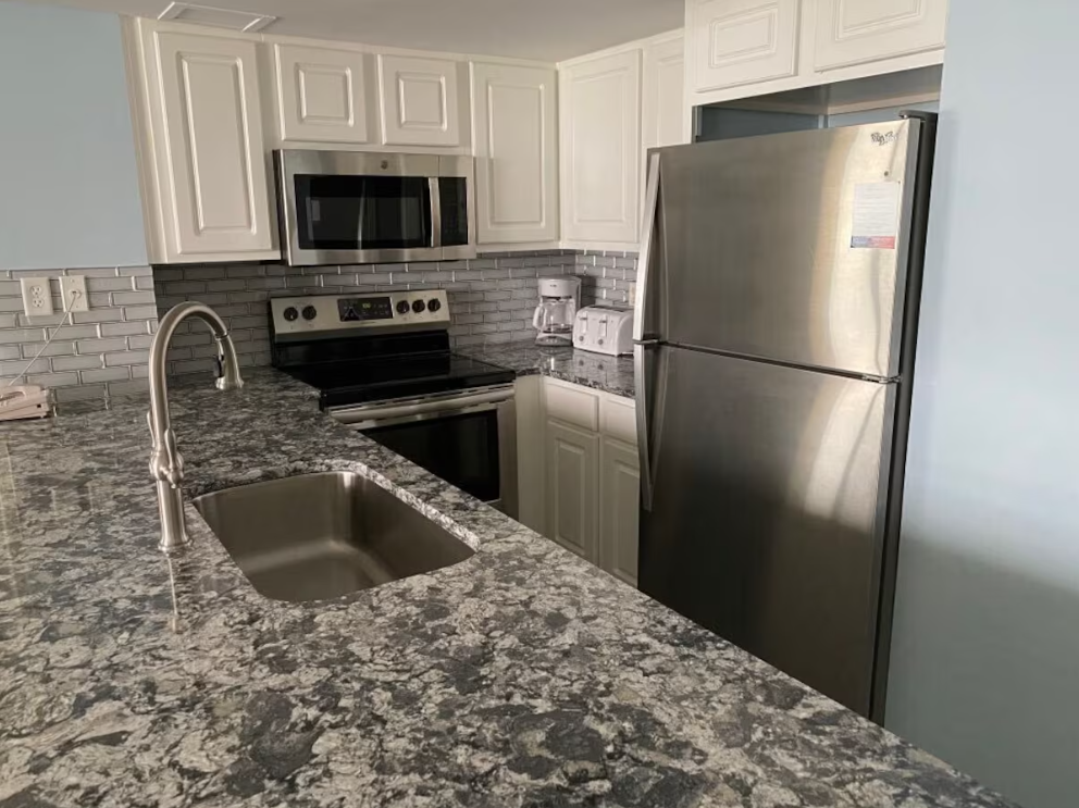 Escape to SunDestin 402, a beautifully updated 1-bedroom, 1.5-bath beachfront condo located in the heart of Destin. Situated in a Gulf-front resort, this unit offers stunning panoramic beach views and all the comforts of home. Inside, you’ll find stylish, comfortable furnishings, stainless steel appliances, and sleek quartz countertops. The fully equipped kitchen has everything you need to prepare meals, which flow seamlessly into a spacious living and dining area with ample seating for everyone. The bedroom features a luxurious king bed, while the living room includes a queen sleeper sofa for additional guests. Fresh linens and towels are provided for your convenience. A community coin-operated washer and dryer are located just down the hall. Spend your days relaxing at the beachfront pool with a refreshing drink from the tiki bar or take a break from the sun in the indoor pool.
