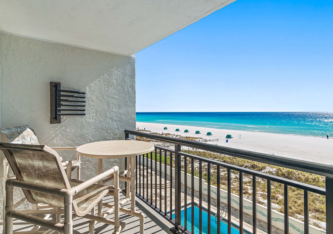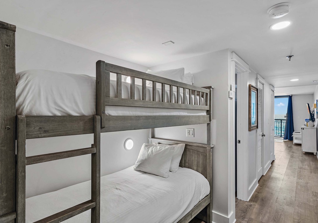 Welcome to SunDestin 405, a beautiful 1BR/1.5BA condo located in a Gulf-front complex in the heart of Destin! Step out onto the private balcony to take in stunning views of the Gulf of Mexico and the sparkling outdoor pool below. Inside, the master bedroom features a king bed and a private ensuite bathroom. A hallway nook offers twin bunk beds perfect for the kids, and the queen sleeper sofa in the living room allows this condo to comfortably accommodate up to 6 guests.