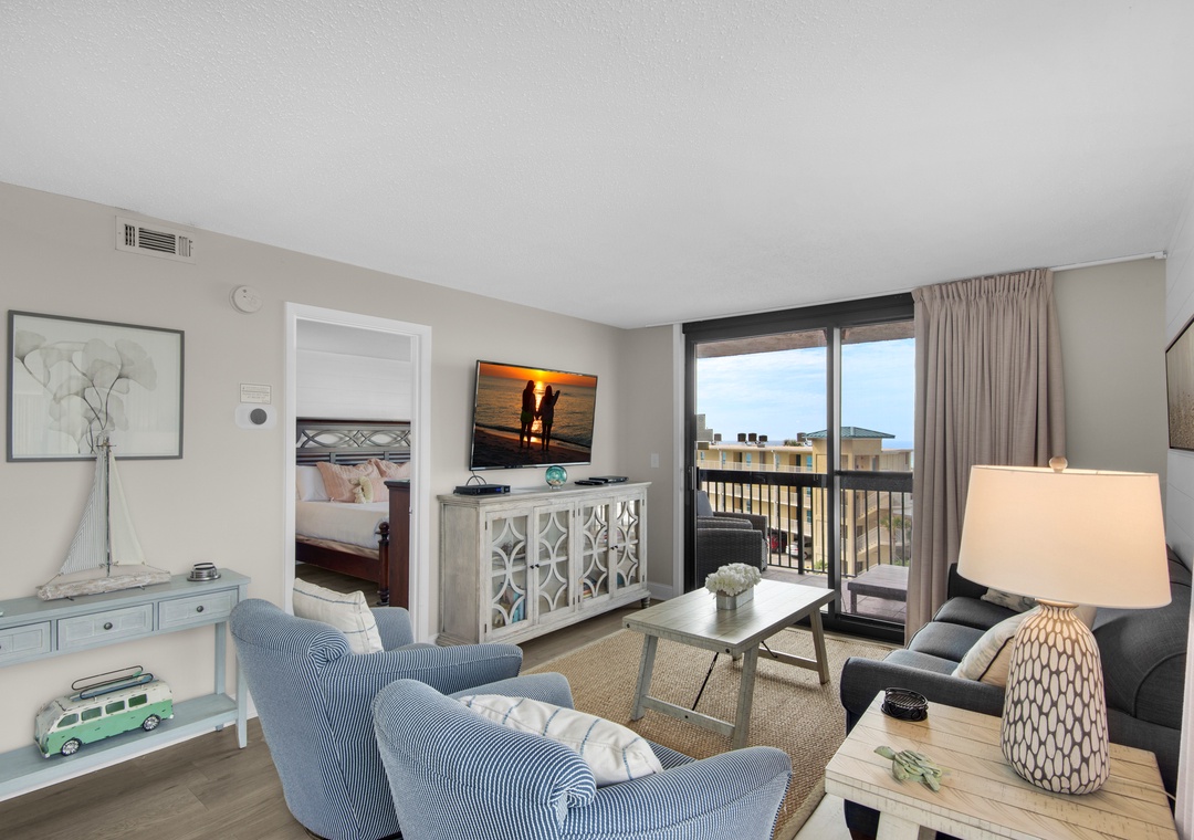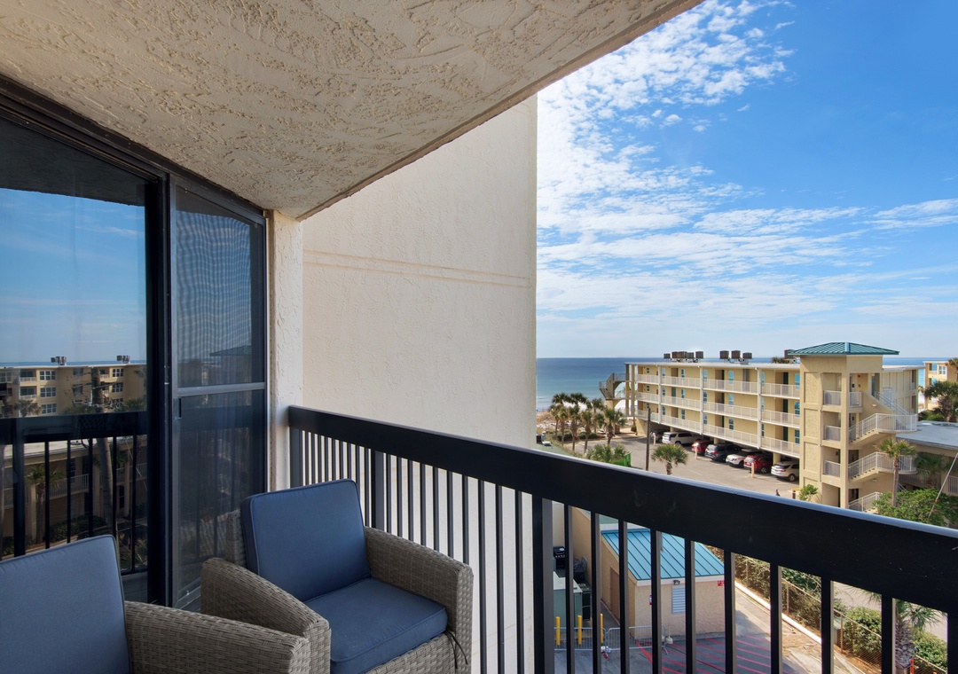 Welcome to SunDestin 518 a 2-bedroom 2-bath updated condo located in the beachside complex of Sundestin. You’ll be greeted by the open floor plan of the kitchen, dining room, and living space The living room offers a ton of natural light due to the large floor-to-ceiling sliding glass doors and living room windows. Prepare a delicious meal in your well-equipped kitchen. Enjoy sitting on the balcony watching the sunset. The master bedroom also offers access to the balcony shared with the living room and a king bed. The guest bedroom has 2 double beds and a sleeper sofa in the living room, making this condo sleep 8 comfortably. Enjoy all the amenities we have to offer like a fitness room, an indoor pool, a complex pool, a hot tub, a sauna, and coin laundry. You have Gulf access without crossing any streets is one of the best amenities for our beach lovers. Come see why the fun never stops at SunDestin 518!
