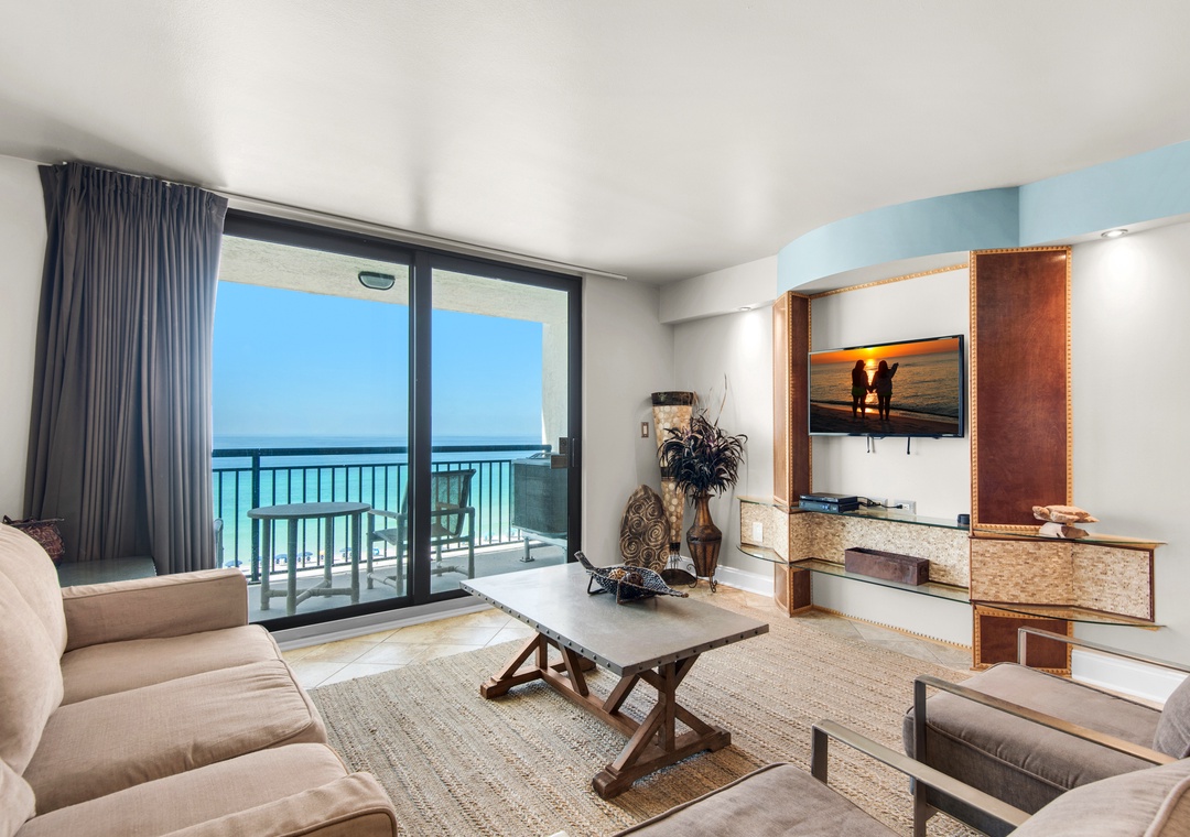 Welcome to SunDestin 711, where breathtaking gulf-front views of the Gulf of Mexico greet you from both the living room and spacious balcony. Start your day with the soothing sound of waves while enjoying your morning coffee, or unwind in the evening as the sun sets over the sparkling emerald waters. This charming 1-bedroom, 1.5-bathroom condo accommodates up to six guests. It features a large king bed in the master bedroom with an en-suite bathroom, a twin bunk bed in the hallway, and a queen sleeper sofa in the living room. The fully equipped kitchen is ready for preparing home-cooked meals, while the expansive living room offers seating for six and a large flat-screen TV – perfect for relaxing after a day of sunbathing on the beach or exploring Destin. Come experience why the fun never ends at SunDestin 711!