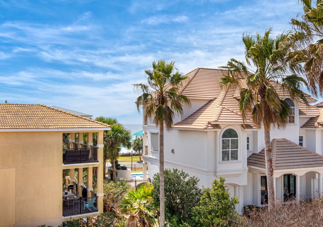 Welcome to Sunny and Share a stunning 3-story, 3-bedroom, 2.5-bath in Terra Cotta Terrace, and 175 yards to the sugar-white sands of Crystal Beach! The fully equipped kitchen has granite countertops, stainless steel appliances, and a dining table. The second floor has a king master bedroom ensuite bath and a queen guest bedroom. The third-floor loft has a twin-over-twin bunk bed and a queen bed. With the sleeper sofa in the living room on the first floor this beautiful home comfortably sleeps a total of 10 guests. Relax on one of the covered balcony decks or lounge poolside at the community pool. Come start making memories at Sunny and Share!