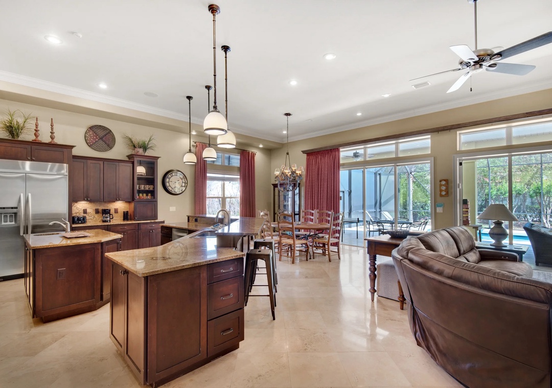 Thank you for the wonderful review! We're so glad the home and location were a perfect fit for your family vacation. It’s great to hear you enjoyed the screened-in pool area—poolside movie night and mimosa brunch sound amazing! We'd love to host you again!