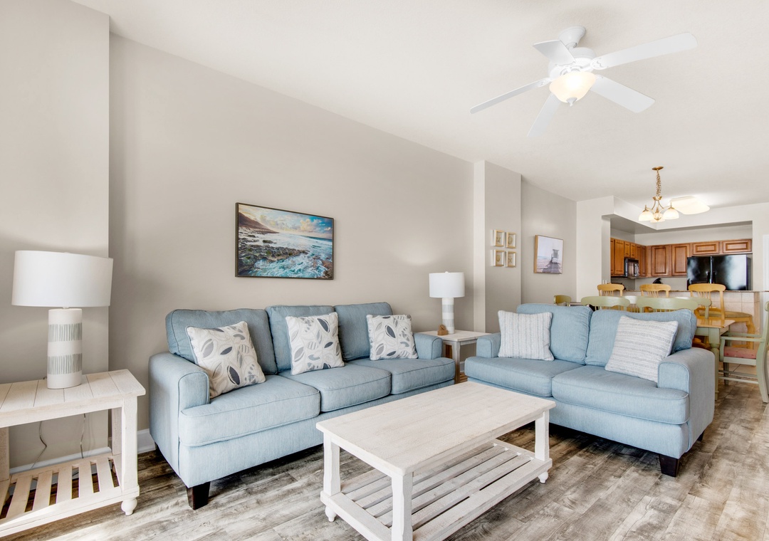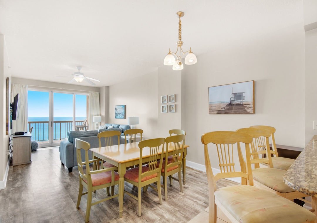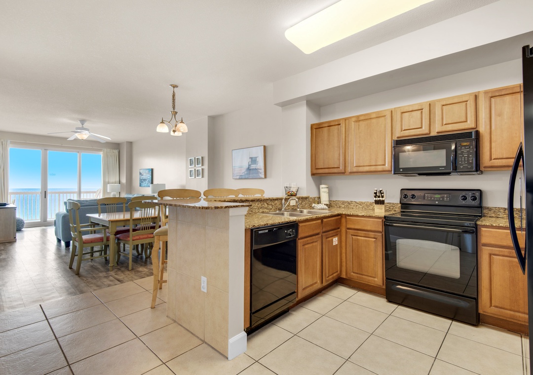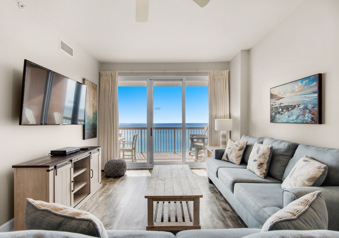 Let the sun shine in at Sunrise Beach #903, an updated 3BR/2BA condo with gorgeous gulf views located in Sunrise Beach Resort. The living room is filled with natural light and a large flat-screen TV, with easy access to the balcony. The fully equipped kitchen boasts everything the chef in your group needs and a wine fridge as an added bonus. This condo sleeps up to 8 guests comfortably with a King master bedroom, a Queen guest bedroom, a Twin-over-Twin bunkroom, and a sleeper sofa in the living room. The King master bedroom also features an ensuite bathroom with a garden tub and a shower, as well as convenient balcony access. Enjoy Gulf views from your private balcony, take a dip in one of the two community pools, or just relax; whatever you decide to do, Sunrise Beach #903 will help you make lasting vacation memories.