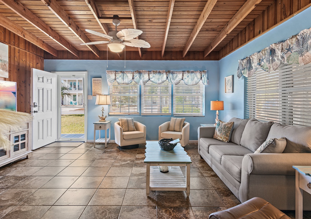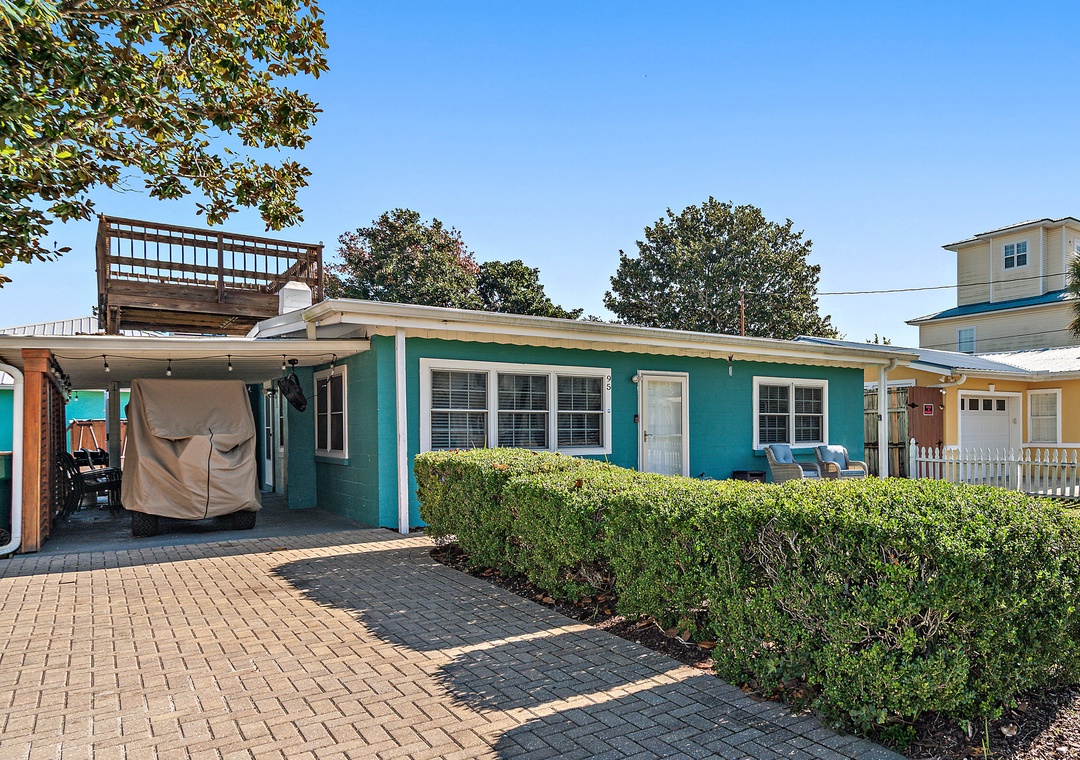Welcome to Sunset at the Beach! This charming 2-bedroom, 1.5-bath retreat is the perfect getaway for families, friends, or anyone looking to relax by the ocean. Just a 6-minute walk to the beach, you’ll be close enough to enjoy the waves anytime you’d like. Inside, you’ll find a fully equipped kitchen where you can prepare meals with ease. The king master bedroom offers comfort and space, while the guest bedroom features two full beds. A queen sleeper sofa in the living room brings the total sleeping capacity to 6 guests. Enjoy cruising around the area with the included golf cart or unwind and soak up the coastal breeze in the backyard hangout space.