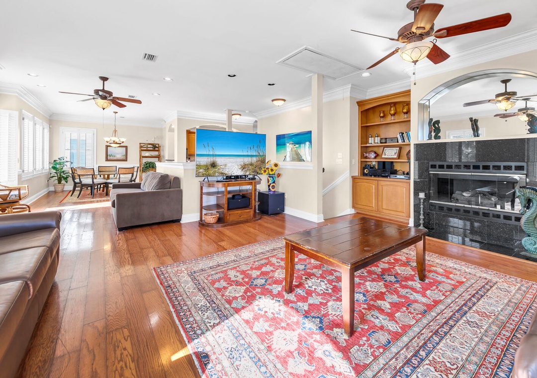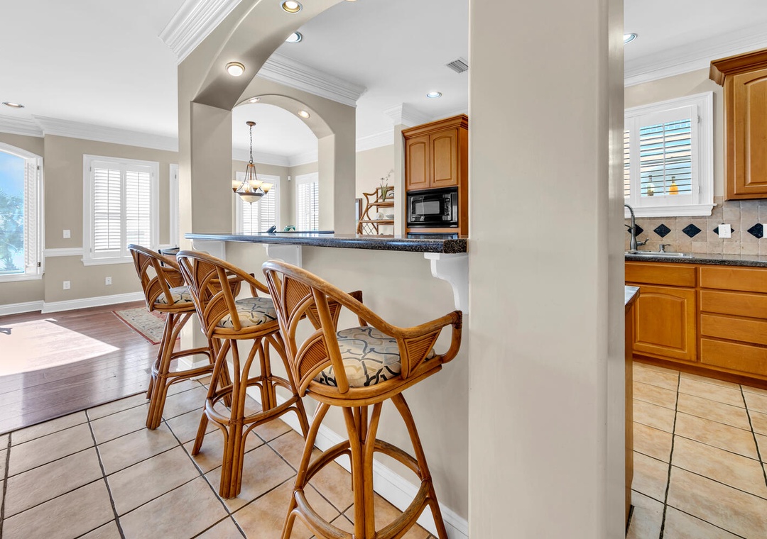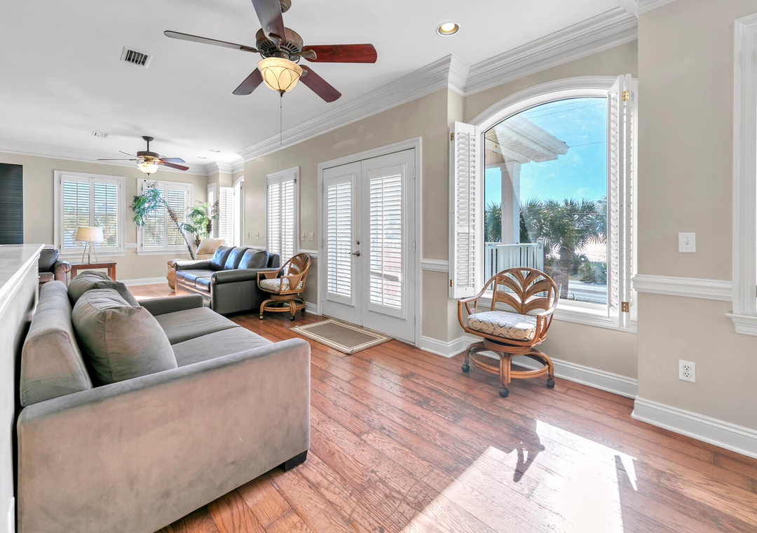 The second floor is home to the large living and dining area, complete with a fully equipped kitchen and plenty of seating for the whole family. Enjoy your mornings or evenings on the covered balcony off the living room, where you can take in the stunning white sand beach views and sunsets. Parking is available for 4 vehicles—two in the garage and two in the driveway. Sunset Breeze is the perfect place to relax, recharge, and create lifelong memories!