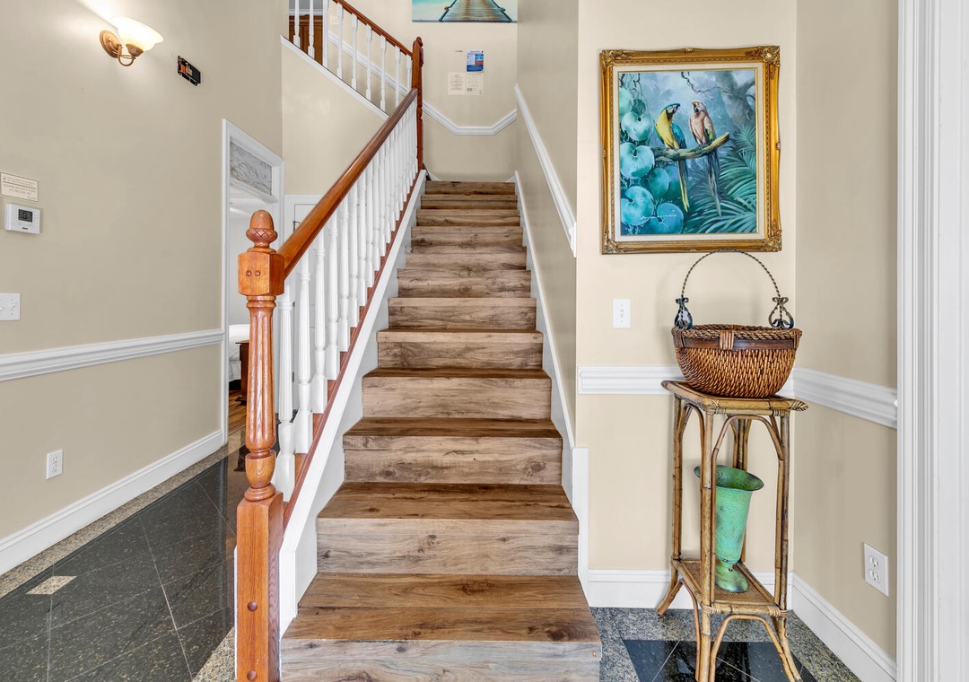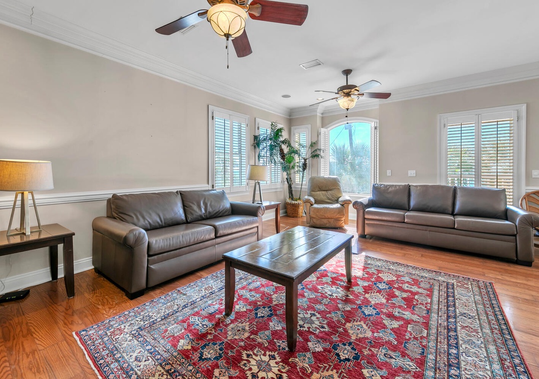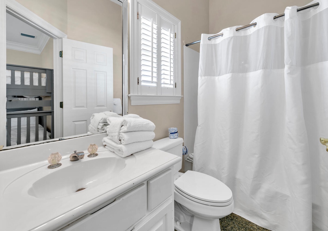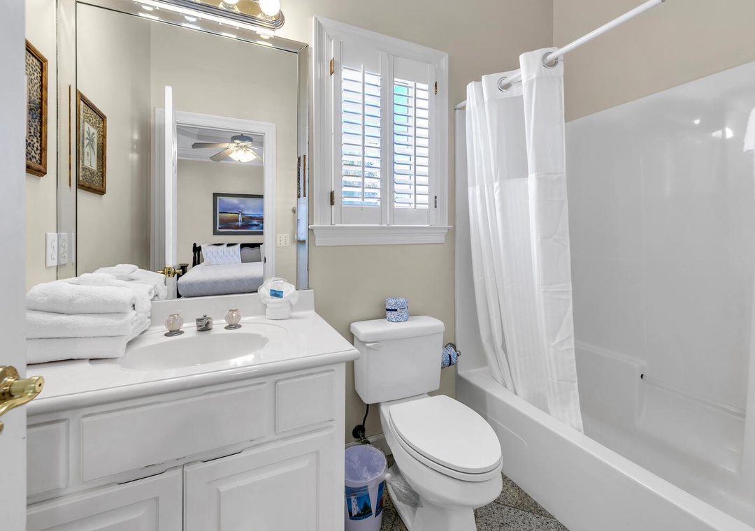 Welcome to Sunset Breeze, your new favorite vacation tradition! This spacious 2,400 sq. ft. beach house is perfect for family getaways and is just steps away from private beach access. The home features 3 bedrooms, 3.5 bathrooms, and comfortably sleeps up to 16 guests. All bedrooms are conveniently located on the first floor, including the master suite with a king bed, ensuite bathroom, separate shower, soaking tub, and dual vanities. The second bedroom has a king bed and ensuite, while the third offers queen-over-queen bunk beds with a queen trundle and an ensuite bathroom. For extra sleeping space, the living room upstairs has 3 queen sleeper sofas.