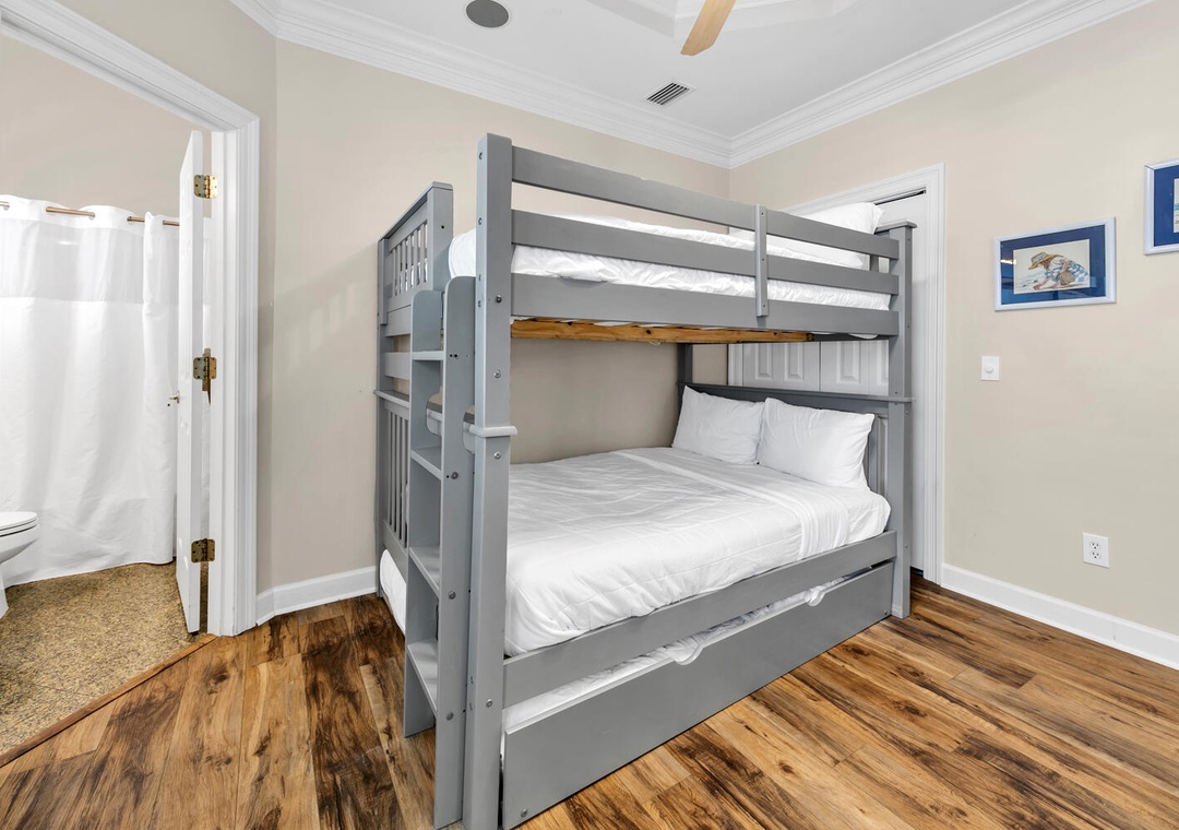 Guest Bedroom #2: Two Queen-over-Queen Bunks + Queen Trundle with Ensuite Bathroom