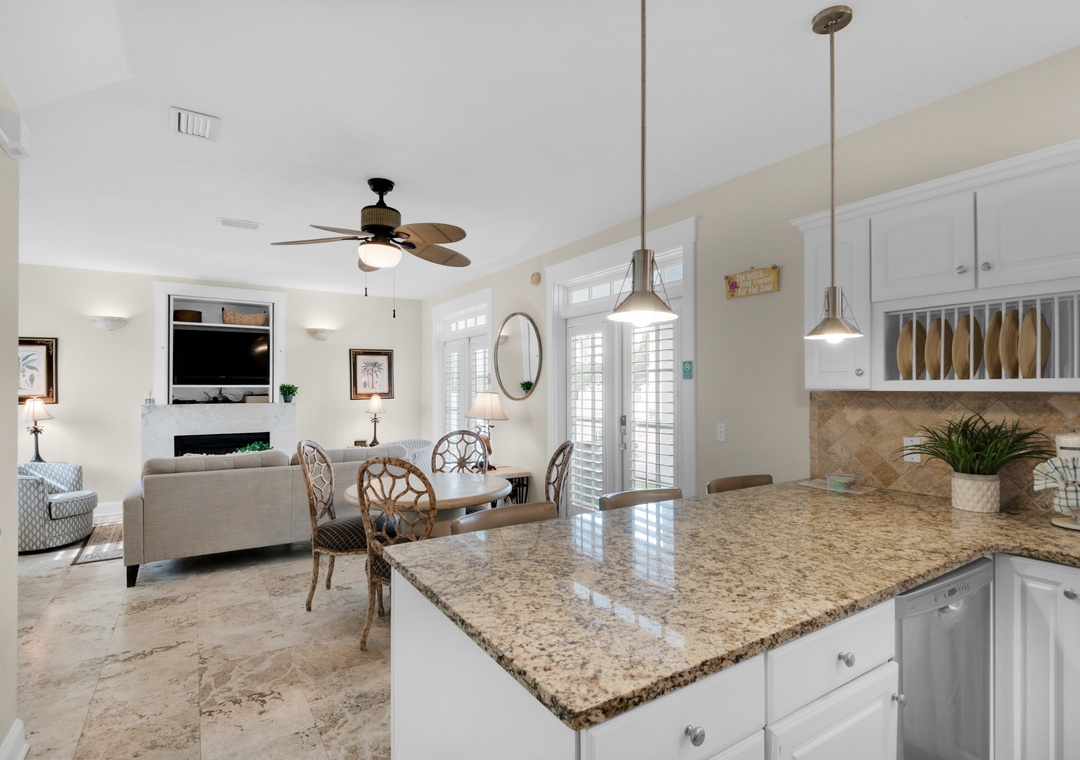 The short distance to walk into town where there was several restaurants to chose from and lots of cute shops. It was so close to the beach which was nice but the downside is that all the rentals/homes across the street have access to the same beach which is confined to specific parameters and therefore, tends to get super crowded.- Reviewed On: 3/8/2024