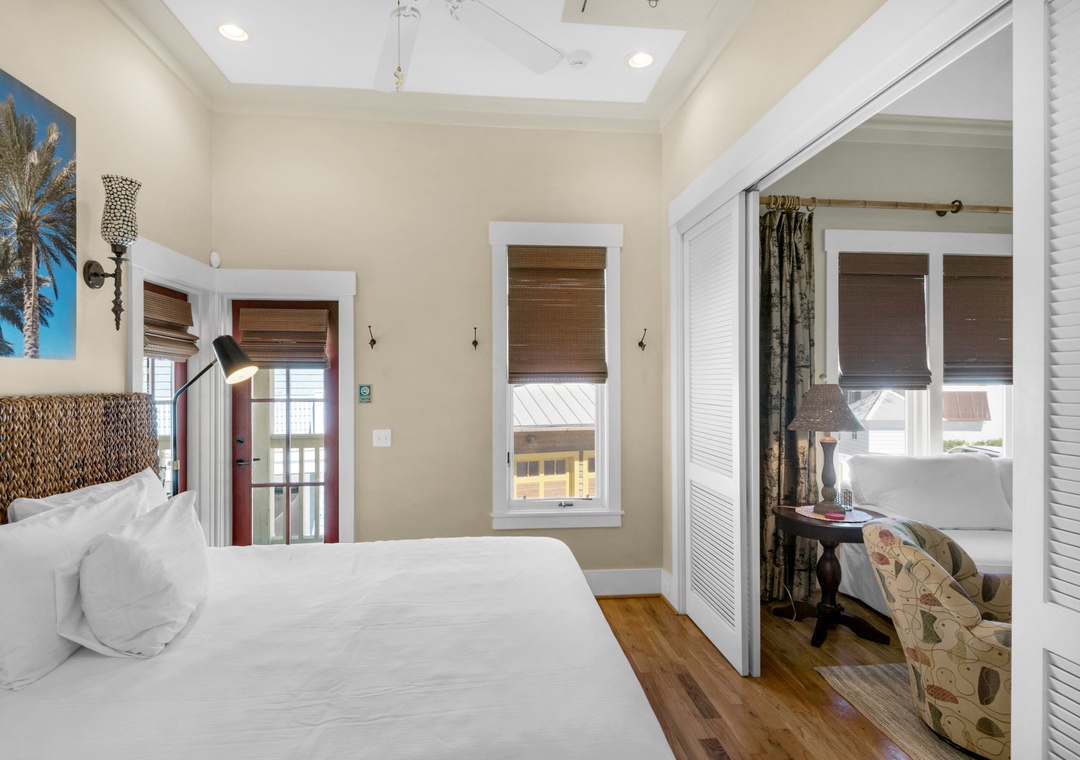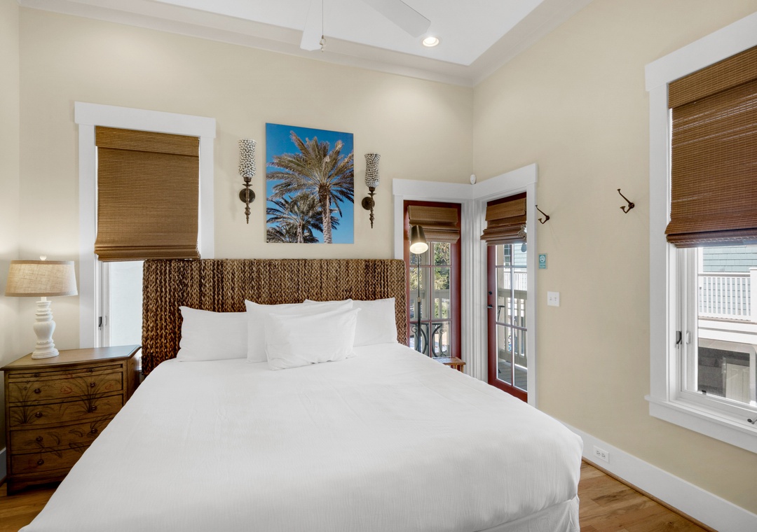 Sunsets at Rosemary is a quaint 1BR/1BA carriage house in Rosemary Beach, just off Hwy 30A. Only a short walk from beach access and Barrett Square, you will be in the center of it all! This lovely home offers comfortable furnishings with gorgeous hardwood flooring and a fully equipped kitchen. The King Suite sleeps 2 comfortably. There is onsite parking for one vehicle during your stay. Plan your daytime adventures at the beach while enjoying your morning coffee on the balcony overlooking the Rosemary Beach community. Come back after a long day spent in the sun and get ready for an evening on the town. Enjoy lasting memories by making Sunsets at Rosemary carriage house your next beach vacation!