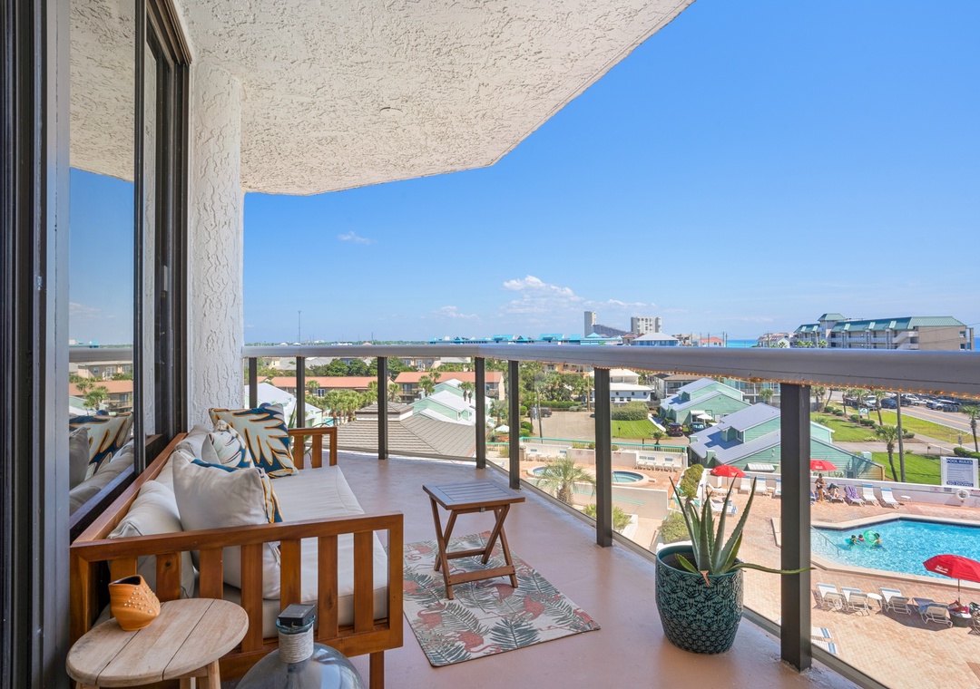 Enjoy spectacular Gulf Views from your large, 4th-floor balcony at Surfside Resort! Surfside Resort 403 is a beautifully decorated 2BR/2BA condo that overlooks the Gulf of Mexico. With a king bed and day bed in the master bedroom, an XL twin over full bunk bed in the guest bedroom, and a queen sleeper sofa in the living room, this condo sleeps 8 guests comfortably. Both bedrooms and the living room have access to the balcony! Enjoy the convenience of the sky bridge that connects you directly from the pool area to the beautiful sugar-white sand beaches! After a fun day at the beach come sit on your balcony with your favorite beverage and take in the views. Come check out why Surfside Resort 403 is your perfect beach vacation!