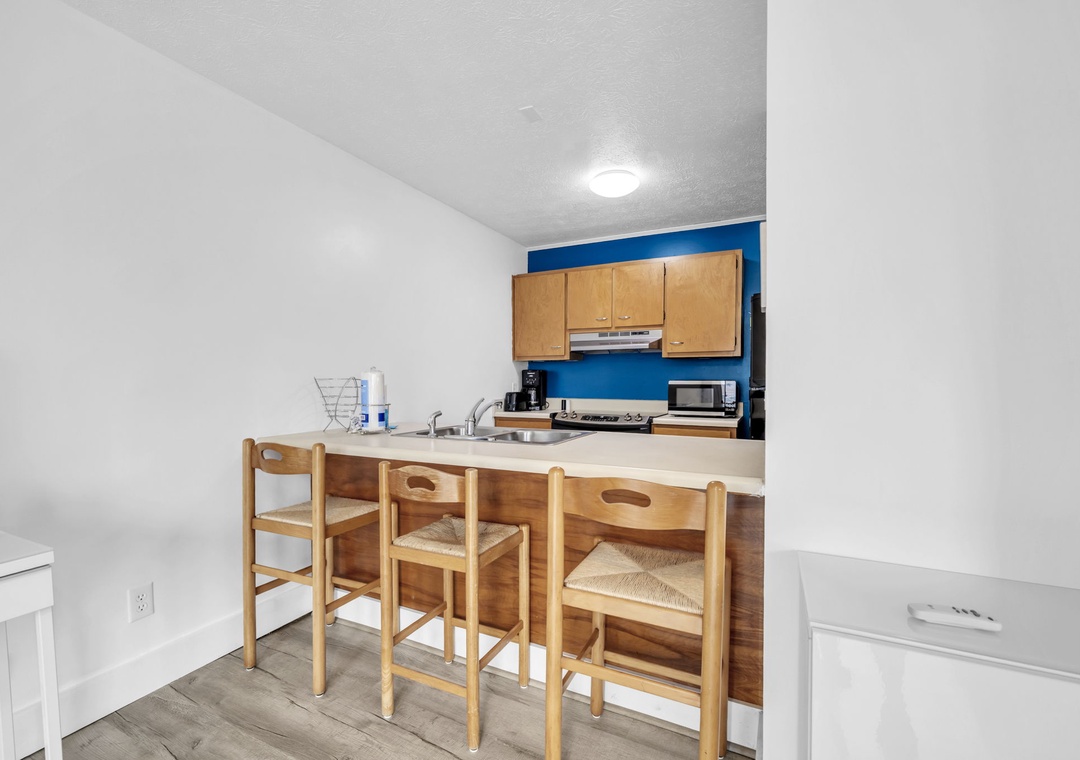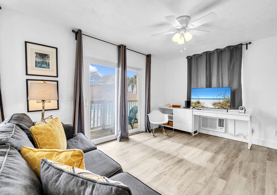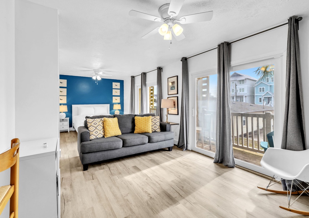 Welcome to Surfwinds #3, a charming studio featuring a cozy queen bed and a queen sleeper sofa, perfect for additional guests. Located just half a block from the nearest beach access, this inviting unit offers beach-inspired décor, a beautifully updated bathroom, and a well-equipped kitchen to easily whip up your favorite meals. Enjoy a lovely Gulf view from your private balcony in this quaint building of only six units. Surfwinds' prime location puts you close to all the locals’ favorite hangouts, blending comfort, convenience, and coastal charm into the ideal beach getaway.