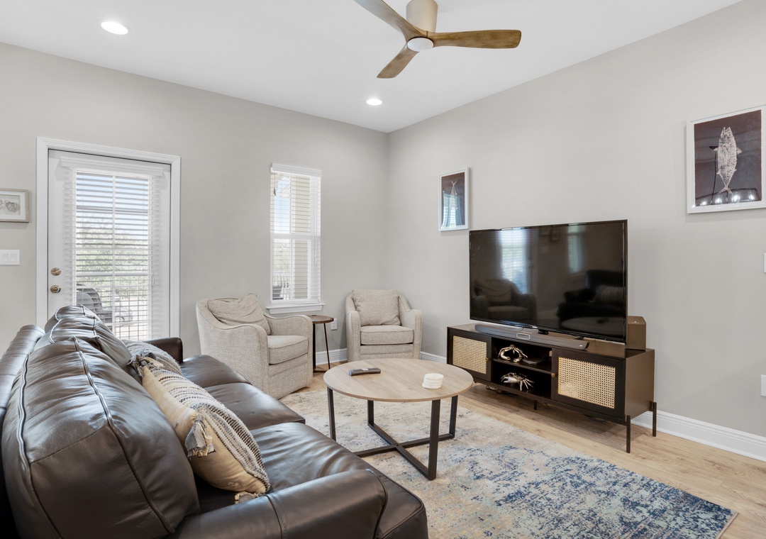 Sweet Life is a stunning townhome just blocks from the beach! Located in the upcoming, resort-style community of 125 Crystal Beach, this newer townhome features 3 bedrooms, and 2.5 baths and can sleep 10 guests! It has a queen-sized bed located on the first floor with a private patio, a full over full bunk with Trundle bed located on the first floor with a private patio, and a master bedroom on 2nd floor with a king bed. The 2nd floor living room is professionally decorated and features a large flat screen TV where you can enjoy streaming your favorite shows, a private balcony, and patio furniture for your enjoyment. You will find granite counter tops, stainless appliances, and top of the line furnishings throughout this home. A short 3 block stroll puts you right in the warm, emerald waters of the Gulf of Mexico. Beach Cart provided for added convenience! Your group will enjoy a relaxing vacation in this beautiful home facing the pool in the upcoming resort-style community of 125 Crystal Beach! 125 Crystal Beach has it all! Come see why Sweet Life will be your new family favorite!