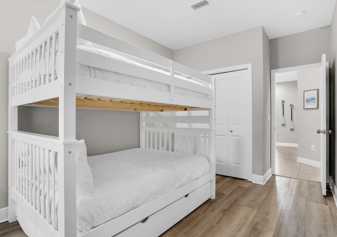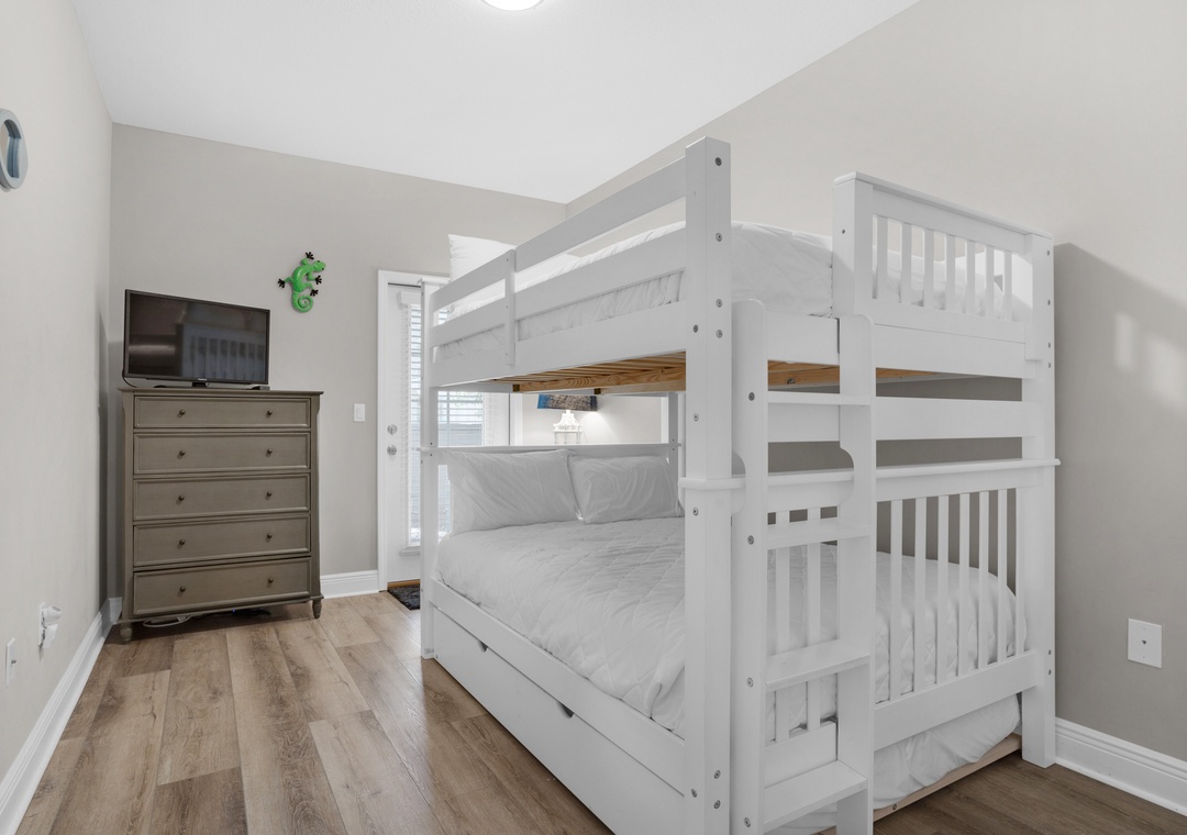 Full over Full bunk bed w/ Full Trundle daybed with patio access