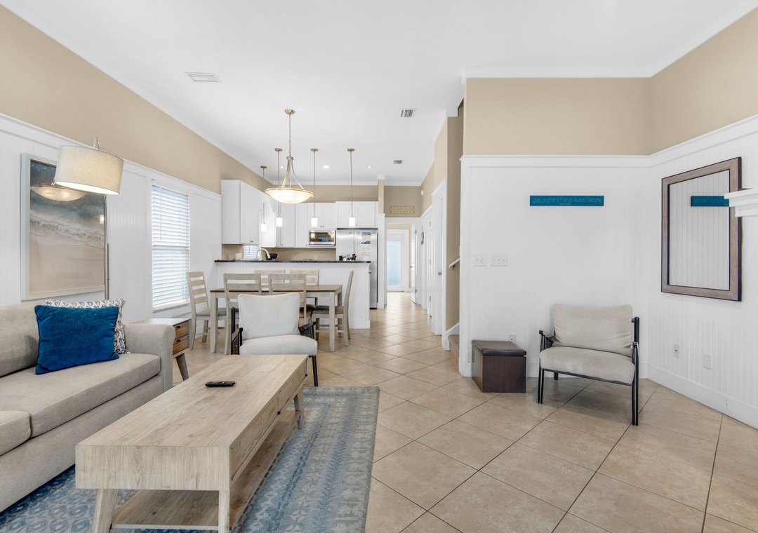 This spacious and stunning 3-level beach home features both modern amenities and architectural character and is located in the fantastic beach community of Terra Cotta Terrace. Sweet Retreat features a spacious open floor plan with soaring 12ft ceilings, a large flat-screen TV, and a cozy fireplace in the living room. The fully equipped kitchen has granite countertops and stainless steel appliances. On the first floor, you will find a queen guest bedroom featuring direct access to the large outdoor patio. Climb the stairs to the 2nd floor to find a king master suite with an ensuite bathroom. Also on the second floor, there is a queen guest bedroom with a private balcony and ensuite bathroom. Lastly, on the third floor, there is a bunkroom with two twin bunk beds, perfect for the kids or the young at heart! Take a short stroll to the community pool or the gated beach access less than 600 yards away.