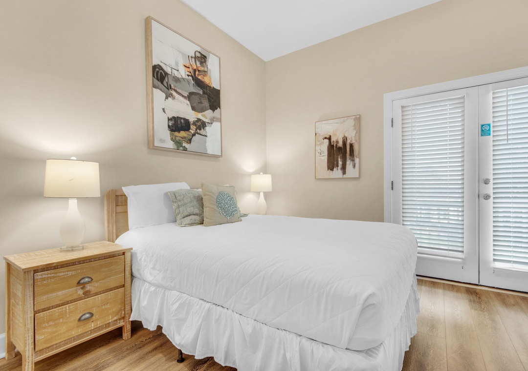 Guest Bedroom: Queen Bed with Patio Access