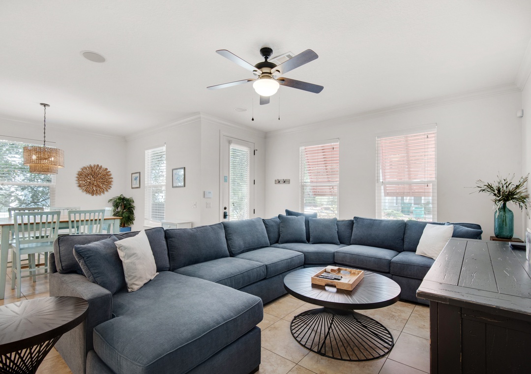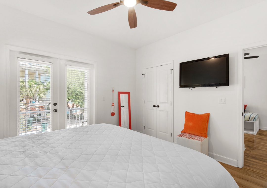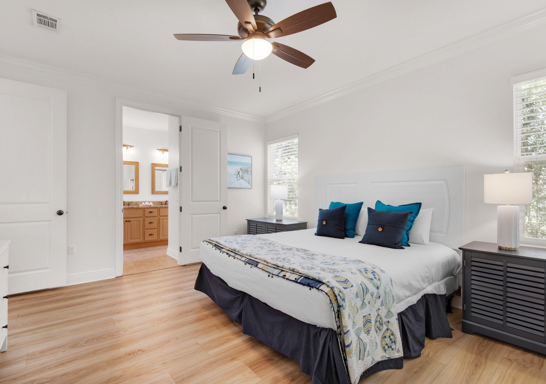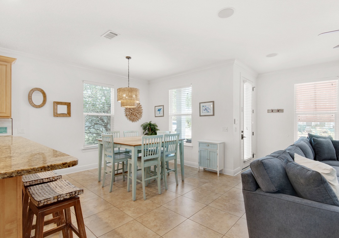 Villages of Crystal Beach is an exclusive, gated community only a few blocks from the beautiful blue waters and white sandy beaches of Destin. You can make the walk on foot or hop on the free seasonal trolley service (Memorial Day through Labor Day): they will even pick you up at the house and drop you off right at the beach! The pool area at Villages of Crystal Beach is a vacation must! The lagoon style zero entry pool is 30,000 square feet of gorgeous, sparkling clear water. There is a spa, tropical landscaping, and plenty of seating areas. It also has surround sound, a flat screen TV, and a grilling area to help you relax and unwind.