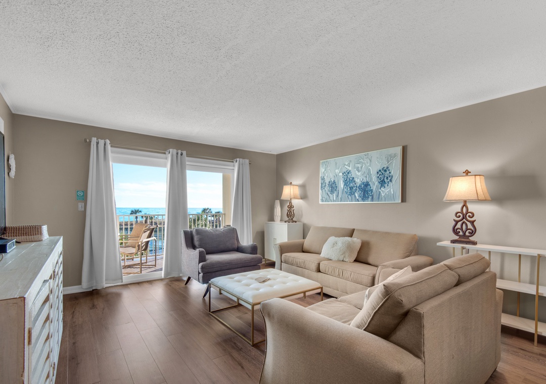 Welcome to The Islander 302 on beautiful Holiday Isle in Destin. This comfortable 2BR/2BA condo is just steps away from the beach and sleeps up to 7 guests comfortably. The master bedroom boasts a king bed and en suite bathroom. The guest bedroom offers a queen bed and twin bed. To complete the sleeping arrangements, enjoy a sleeper sofa in the living room. Sip on your morning cup of coffee on the spacious balcony before the kids wake up, and take in the amazing sunrises the area has to offer. Come see why The Islander 302 will take your breath away.