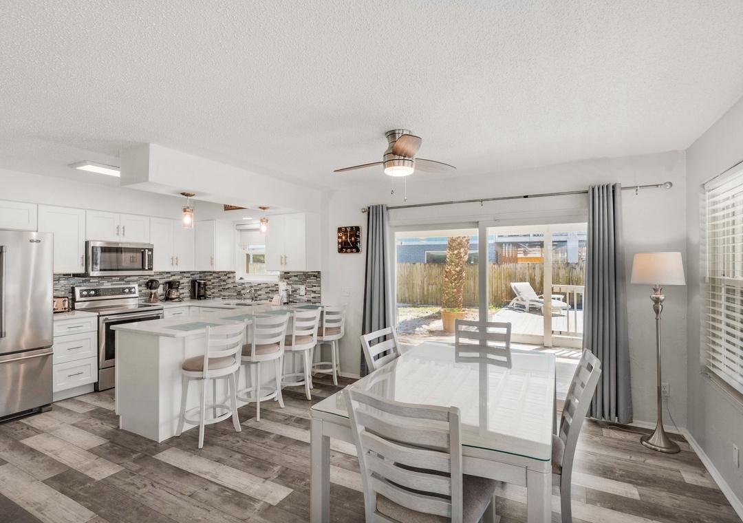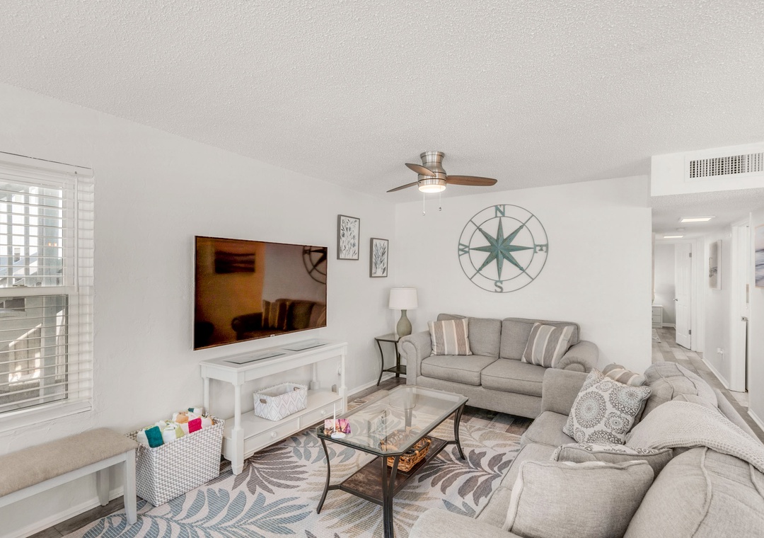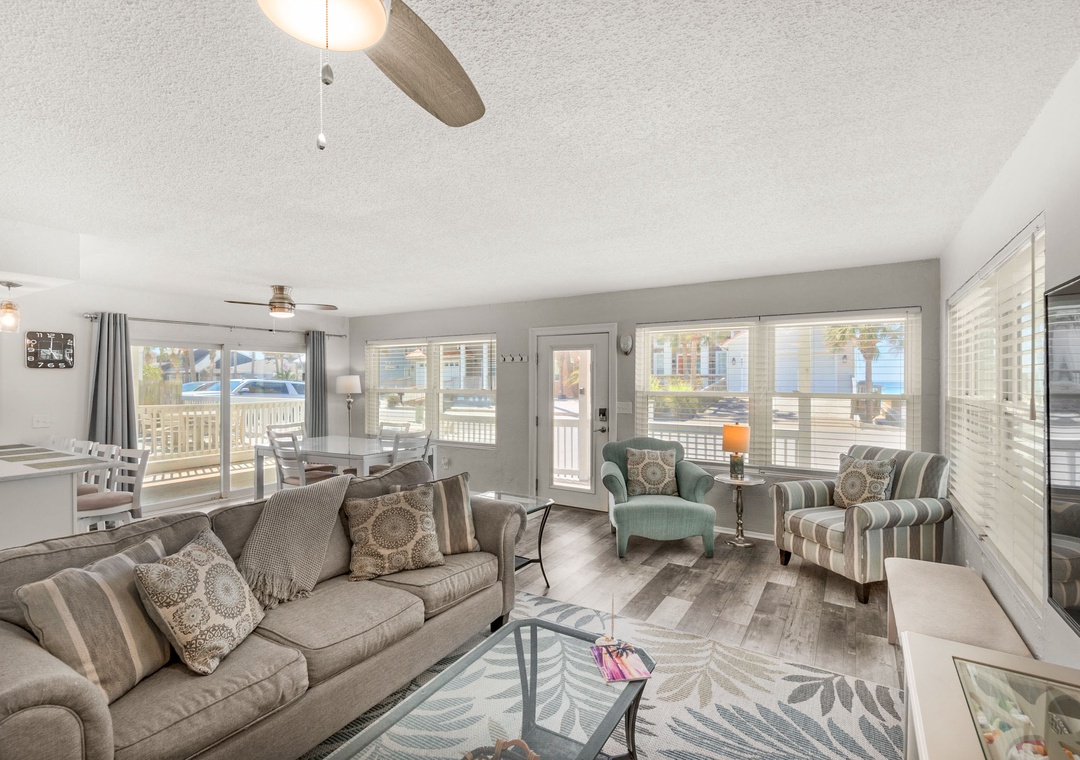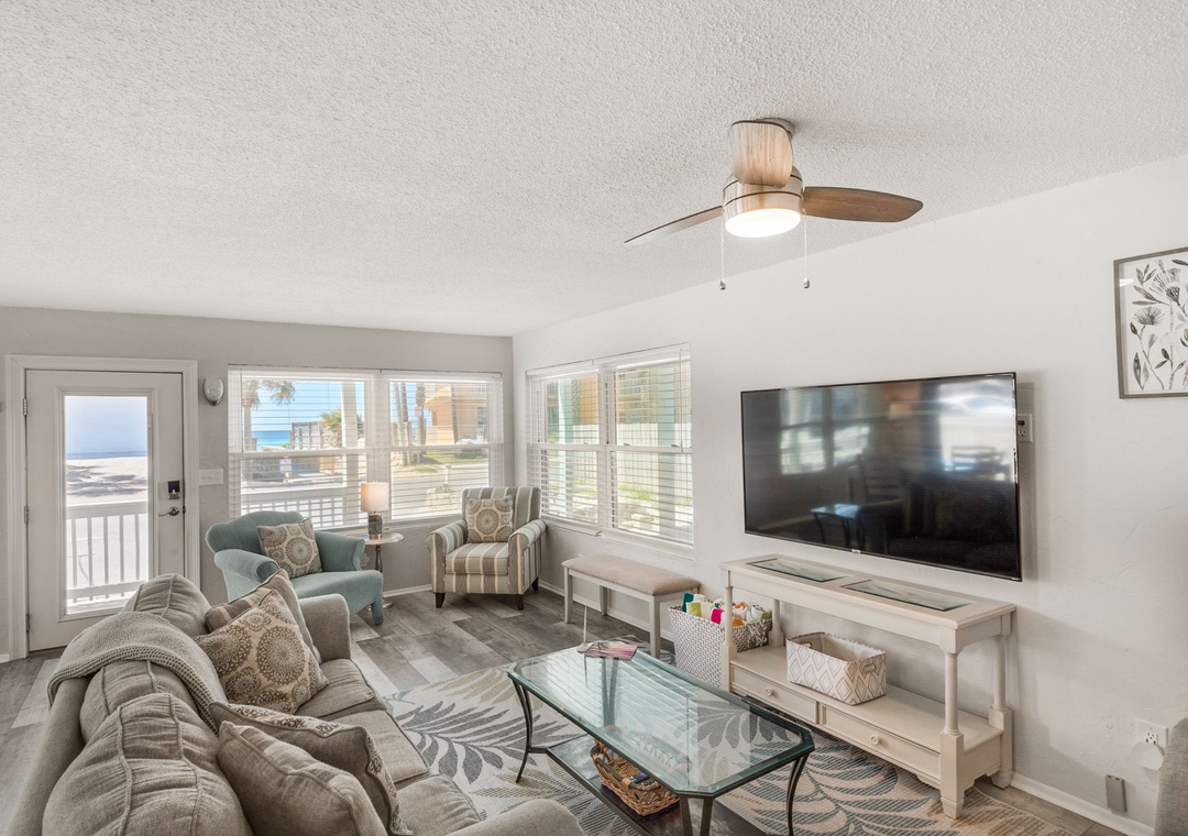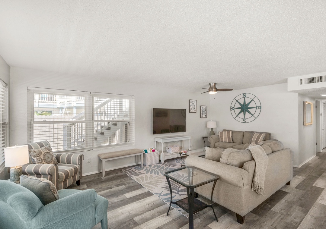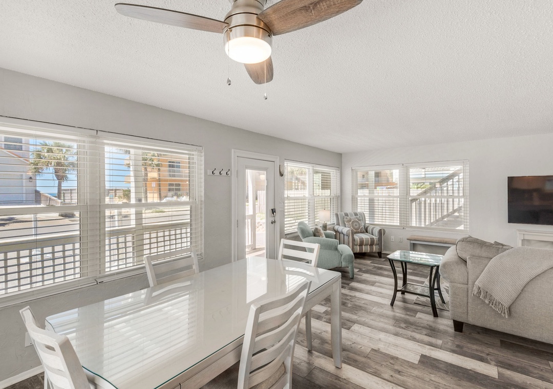 Welcome to The Sand Dollar B. This beautiful 3-bedroom 2 bath unit is located on the ground floor of The Sand Dollar duplex. Located directly across the street from the beach access, guests can find a large outdoor living space to relax in after a long day at the beach. An open floor plan in the living area allows for everyone to be included in the conversations. The chef of the party will love the updated kitchen with stainless steel appliances and plenty of prep space. The dining table seats up to 6 guests with additional seating available at the bar. Relax in the living room with new furnishings and a flat screen TV to watch your favorite show. The master suite features a king bed and en suite with a walk-in shower and laundry. The first guest bedroom includes a king, the other guest bedroom offers 2 twin beds, and additional sleeper sofa is available in the living room, allowing up to 8 guests to sleep comfortably. Come make lasting memories at The Sand Dollar B to last a lifetime.