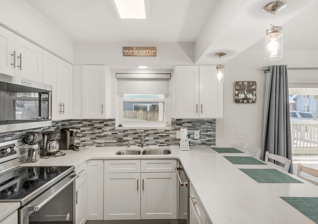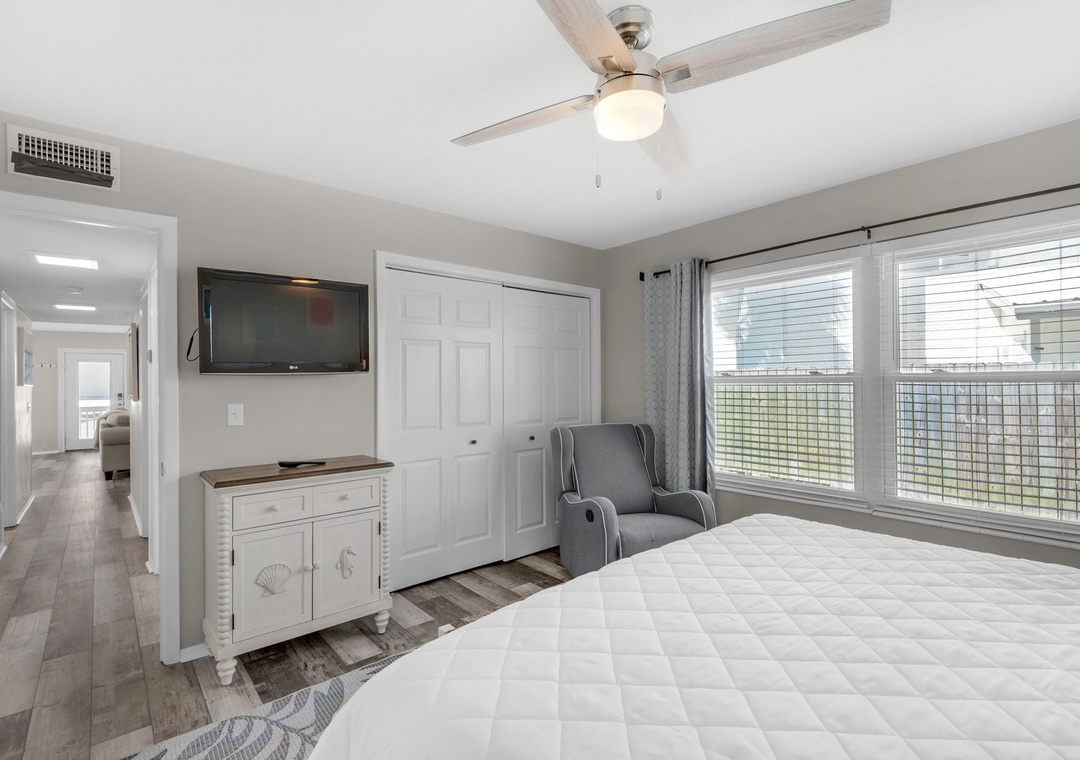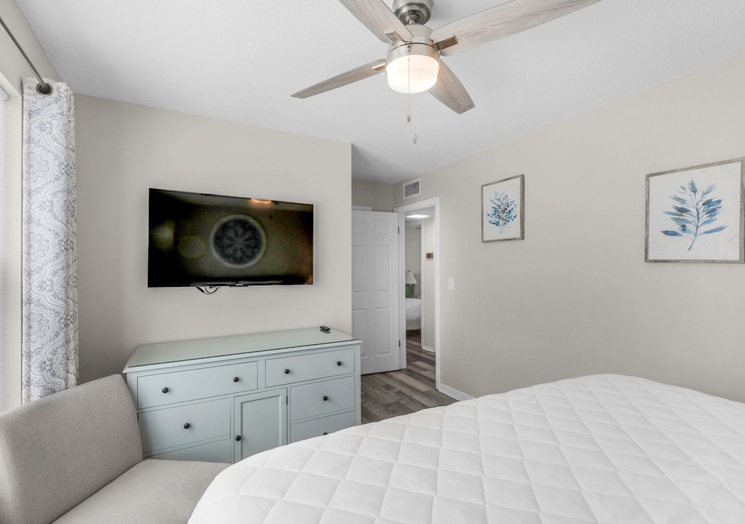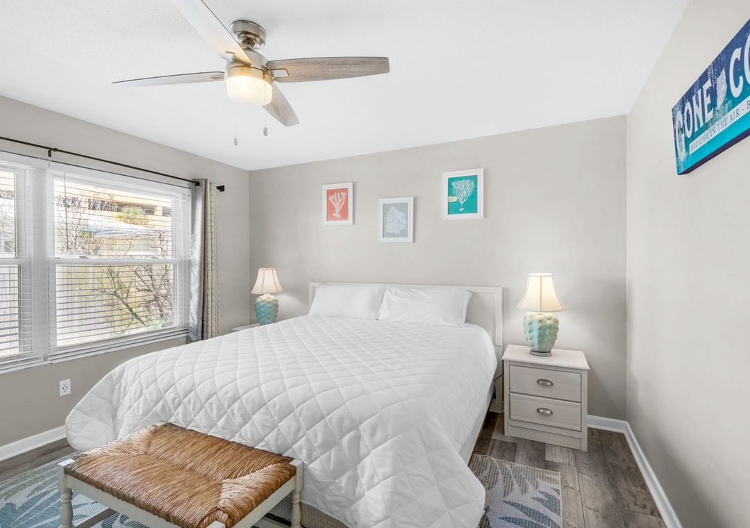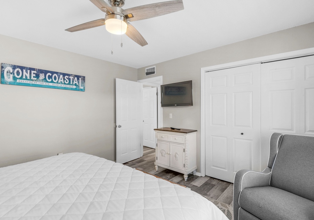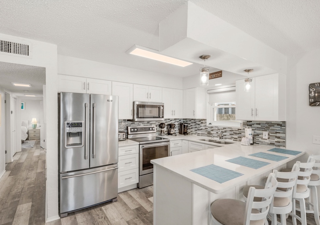 Welcome to The Sand Dollar B. This beautiful 3-bedroom 2 bath unit is located on the ground floor of The Sand Dollar duplex. Located directly across the street from the beach access, guests can find a large outdoor living space to relax in after a long day at the beach. An open floor plan in the living area allows for everyone to be included in the conversations. The chef of the party will love the updated kitchen with stainless steel appliances and plenty of prep space. The dining table seats up to 6 guests with additional seating available at the bar. Relax in the living room with new furnishings and a flat screen TV to watch your favorite show. The master suite features a king bed and en suite with a walk-in shower and laundry. The first guest bedroom includes a king, the other guest bedroom offers 2 twin beds, and additional sleeper sofa is available in the living room, allowing up to 8 guests to sleep comfortably. Come make lasting memories at The Sand Dollar B to last a lifetime.