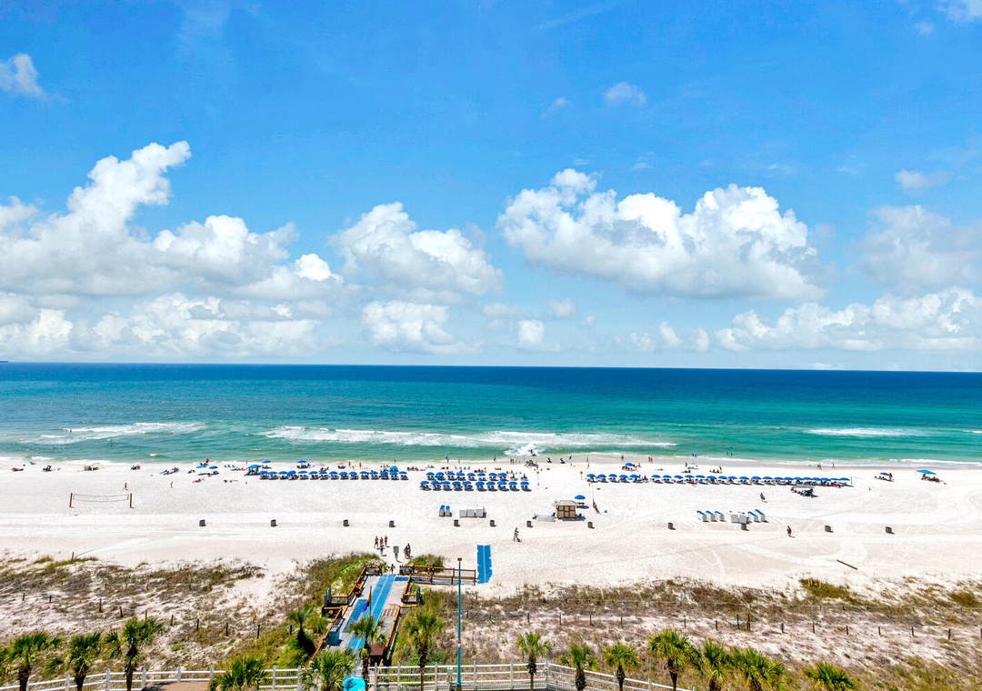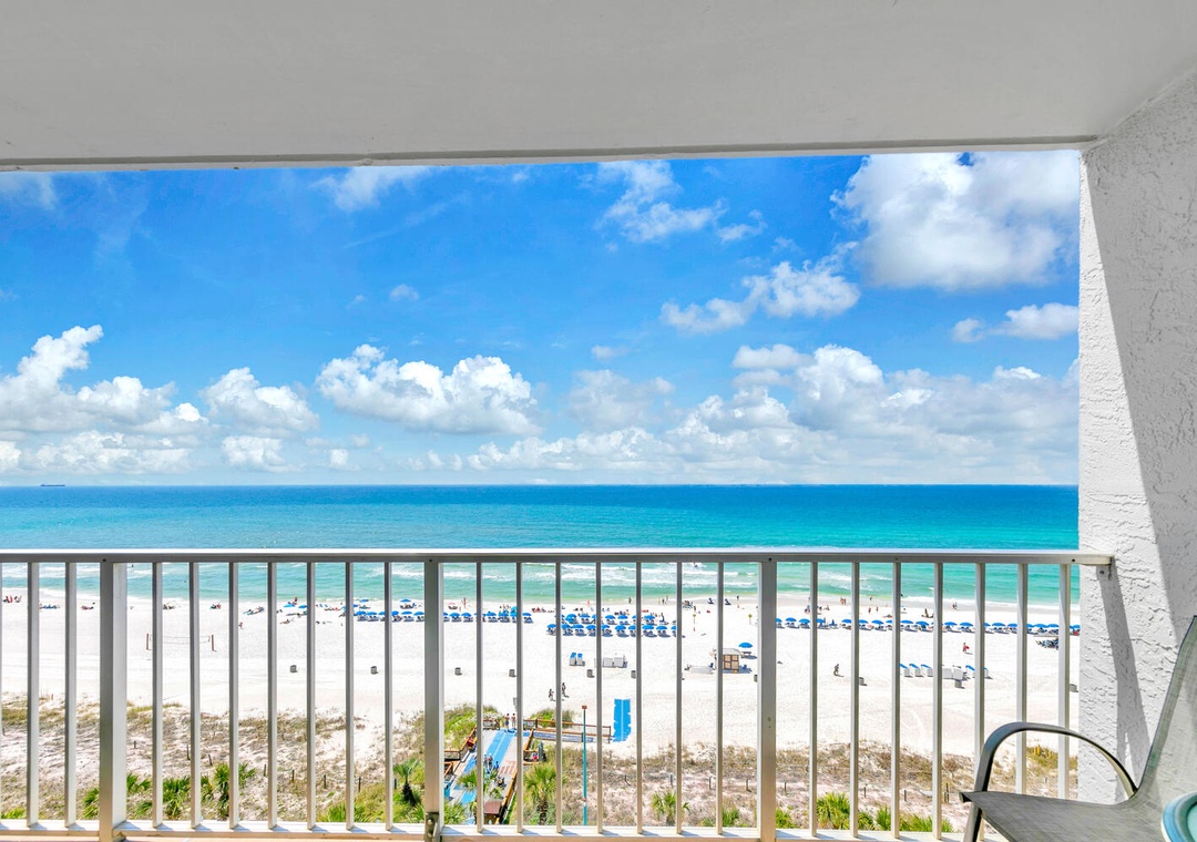 The Summit is located beachfront in Panama City Beach! Vacation rentals here have incredible Outdoor Amenities including: Two Large outdoor pools, Two children's pools, Two large outdoor hot tubs, One large indoor hot tub, His and Hers Sauna Steam Rooms, Lighted Tennis Courts, Shuffleboard Court, Beach Services, Water Sports Center, Bikini Bob's restaurant, Beach Volleyball and Poolside Tiki Bar. Indoor Amenities include a Convenience Store, Snack Bar, Fitness Center, coin-operated laundry, Free local calls, Charcoal BBQ Grills, Arcade, and Vending Machines.
