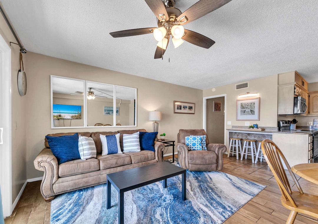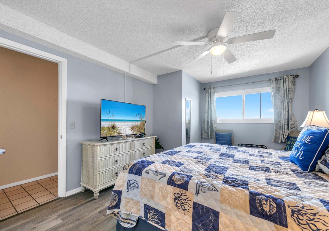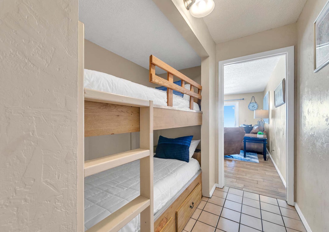 Welcome to your getaway at The Summit 1019—a 1-bedroom, 1.5-bathroom gulf-front condo! Prepare delicious meals in the well-equipped kitchen. Accommodating up to 5 guests comfortably, this beach haven features a king bedroom, a twin-over-twin bunk bed in the hallway, and a queen sleeper sofa in the living room.