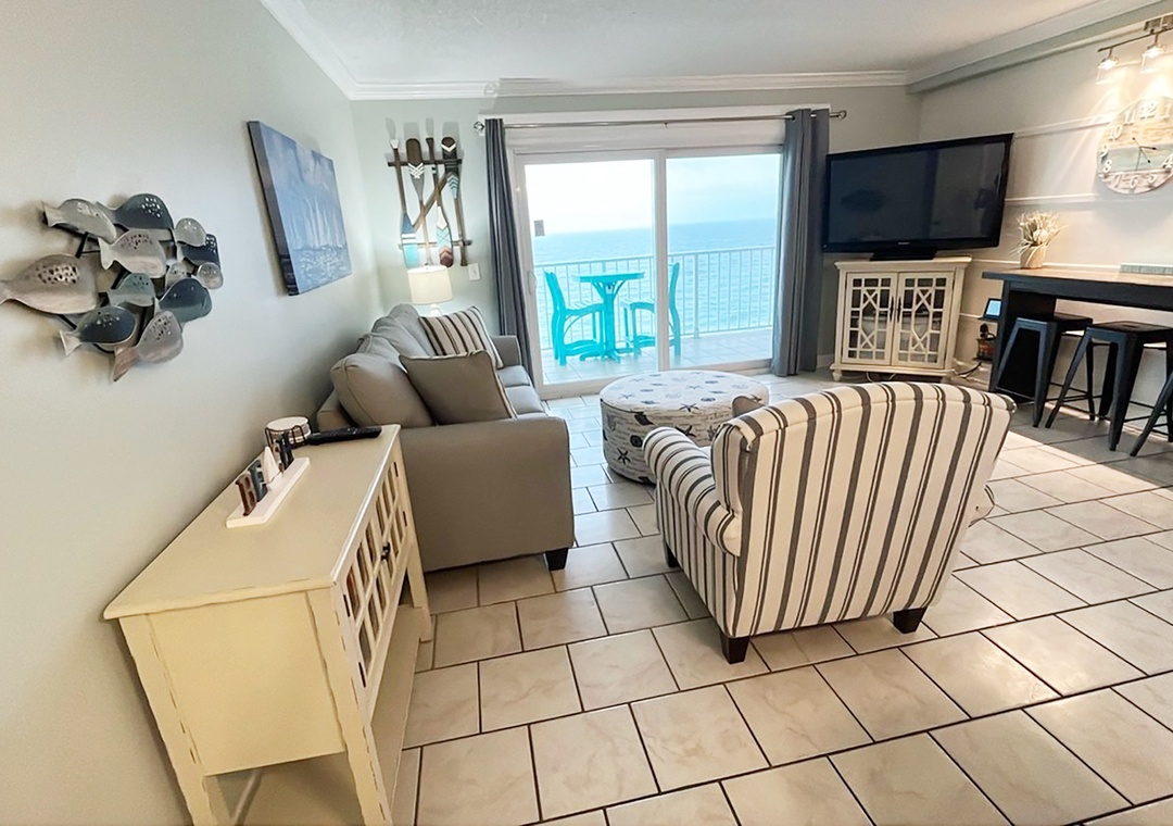 Welcome to The Summit 1426! Enjoy fabulous beachfront views from the 14th floor in Panama City Beach! This one-bed, two-bathroom condo has a king bed in the master bedroom, twin bunk beds in the hallway, and a sleeper sofa in the living room, sleeping up to 5 guests comfortably. Enjoy the sunset from the Gulf Front balcony with endless views of sugar-white sand and emerald waters! The fully equipped kitchen has everything the chef in your group needs to whip up a delicious meal. The living room has plenty of seating to watch your favorite movie on the flat screen TV and gulf views. if you want to keep your fitness routine, the on-site gym will have everything you need. With a fully equipped kitchen, spectacular amenities, and a prime location in Panama City Beach, you'll have it ALL at The Summit 1426!