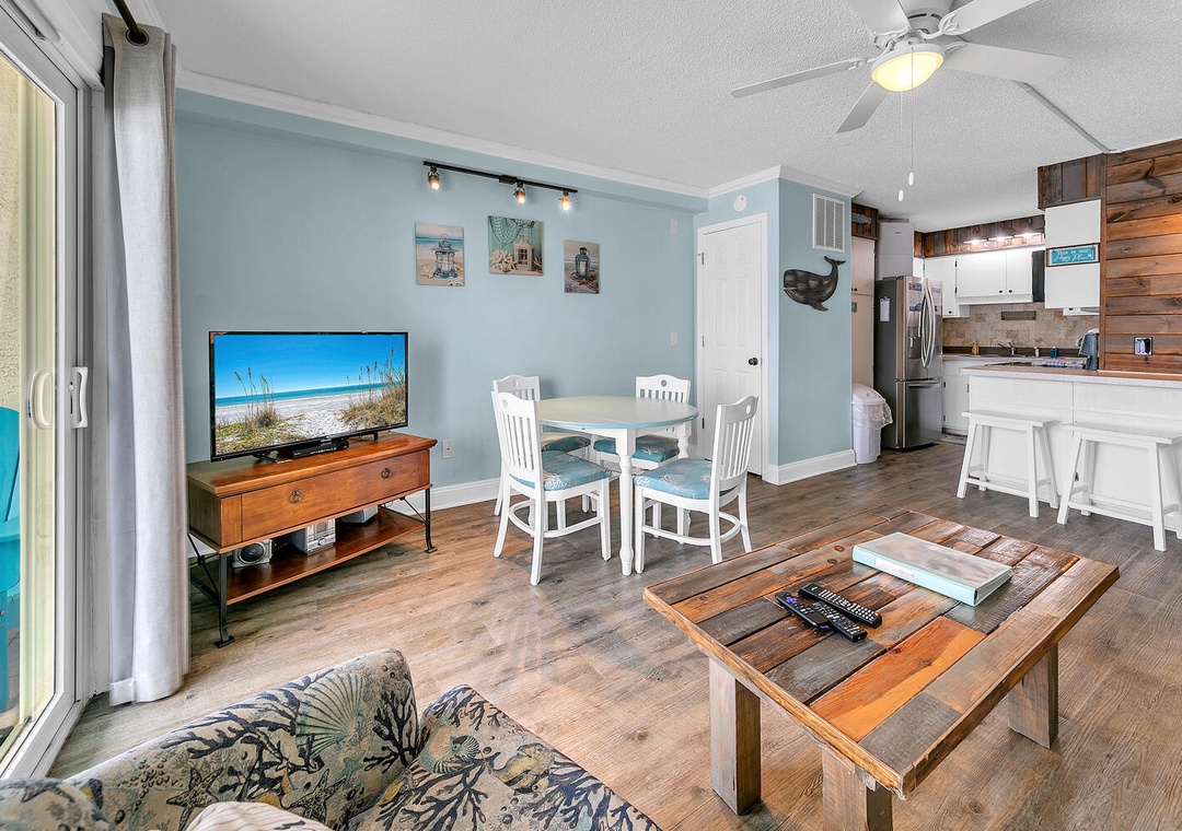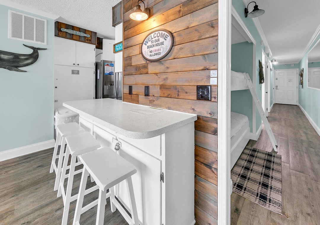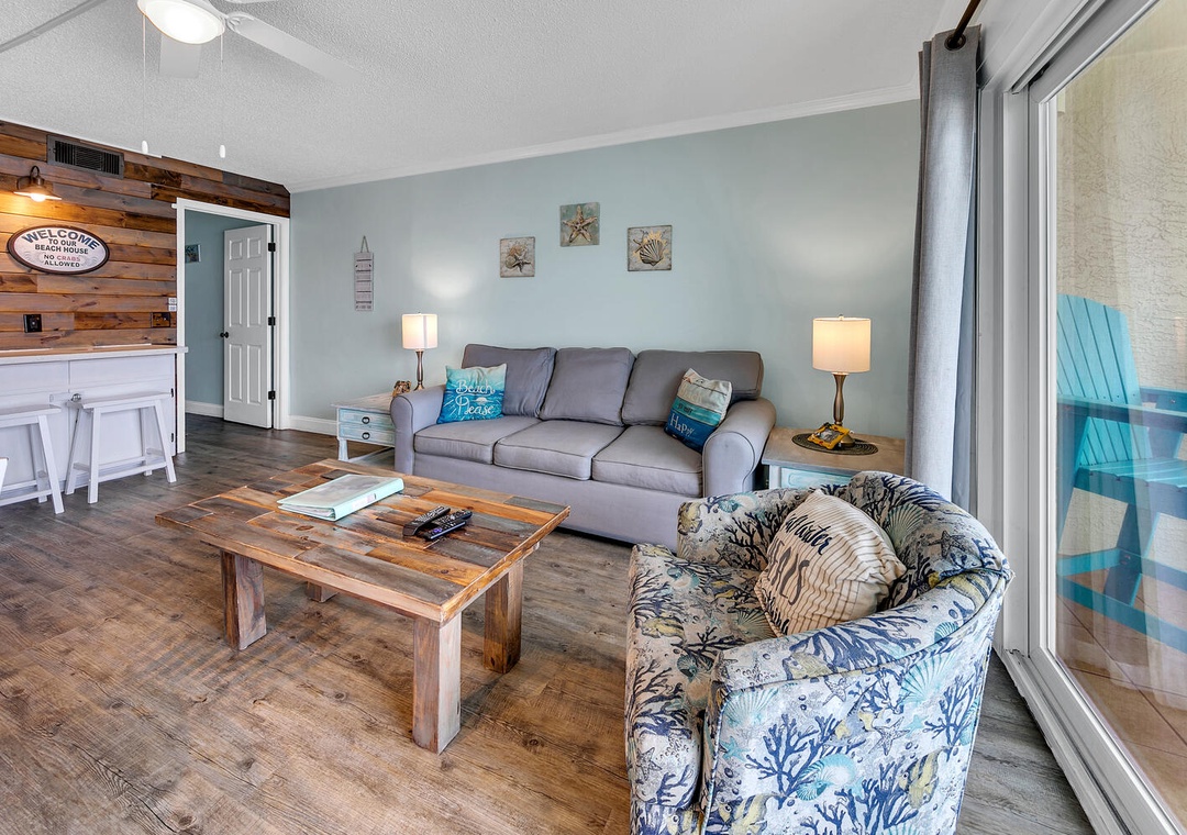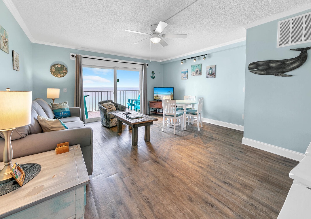 Enjoy spectacular beachfront views from the ninth floor at The Summit 924. This 1-bedroom 2-bathroom condo features a king bedroom, a hallway twin over twin bunk bed, and a queen sleeper sofa in the living room. Sleeping up to 6 guests, this condo is perfect for a romantic getaway or family vacation. Wake up with your morning coffee while sitting on the balcony with endless views of sugar white sand and emerald waters. Unwind after an eventful day in the sun with new living room furniture and a flat screen TV that will allow you to stream your favorite movies and TV shows. Let the chef of the party whip up a delicious meal in the fully equipped kitchen with all-new appliances and decorative wood panel accents. A nearby dining table allows the group to eat together and plan the next adventures to happen. Spectacular on-site amenities and a prime location will have you feeling like you have it all at The Summit 924.