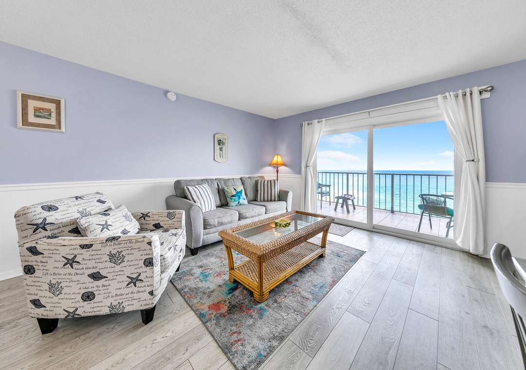 Welcome to The Summit 928. This 1 bedroom 1.5 bath condo is located on the 19th floor features stunning views of the pool and gulf from the spacious balcony. Enjoy your morning coffee or evening libations while taking in the warm salty air. Let the chef of the party whip up a delicious meal in the fully equipped kitchen which is open to the dining area and living room. A dining table to seat 4 with additional seating at the bar for two allows for everyone to dine together. Unwind after an eventful day in the sun with a flat screen TV and more gulf views. Rest your head in the master bedroom that features a queen bed and attached bathroom. Additional guests will find hallway twin over twin bunks and queen sleeper sofa in the living room to sleep up to 6 guests comfortably. Making this condo perfect for a romantic getaway or family vacation. Spectacular on-site amenities, and prime location will have you feeling like you have it all at The Summit 928.