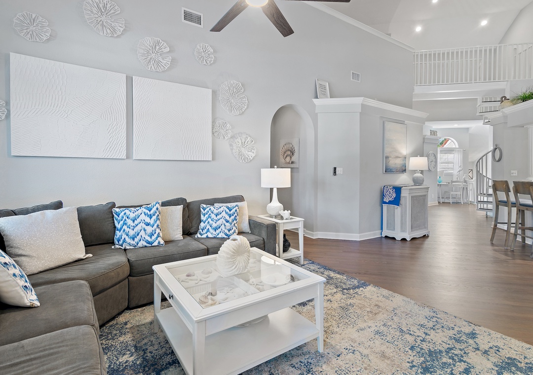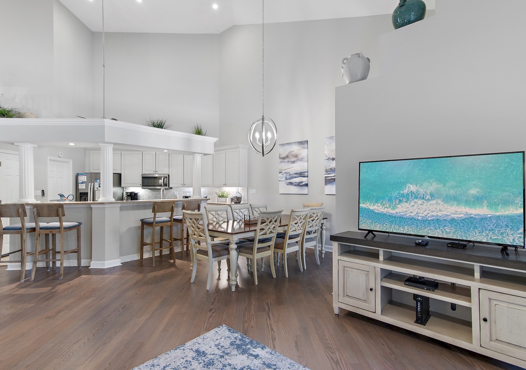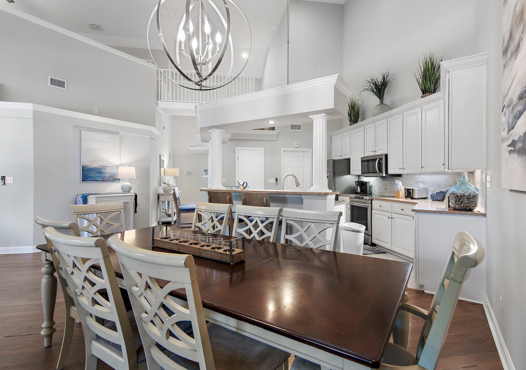 Thirsty Turtle is a beautifully decorated 4-bedroom, 3.5-bath, two-story townhome located in the quiet neighborhood of Tivoli in Sandestin Golf and Beach Resort. Recently updated, this wonderful space has relaxing, cool blues and natural tones that flow through while sleeping up to 10 guests comfortably. Enjoy a luxurious king bed in the master suite that features a private balcony that overlooks the pool, and a private en-suite bathroom complete with a chic double vanity, a large walk-in shower, and a soaking tub. There are two guest bedrooms on the first floor, each with a king bed, large flat-screen TVs, and generous closet space. Both also have access to a full bathroom with a shower/tub combination. Up the spiral staircase, you will find the loft area, which has been turned into the 4th guest bedroom, with two twin beds and two rollaway beds, a flat-screen TV, and a half bath: a great space for kids or extra guests! You will love the community pool, and of course, the fabulous Sandestin amenities! Come make lifelong memories at Thirsty Turtle!