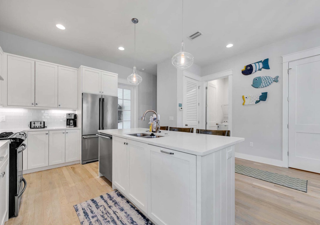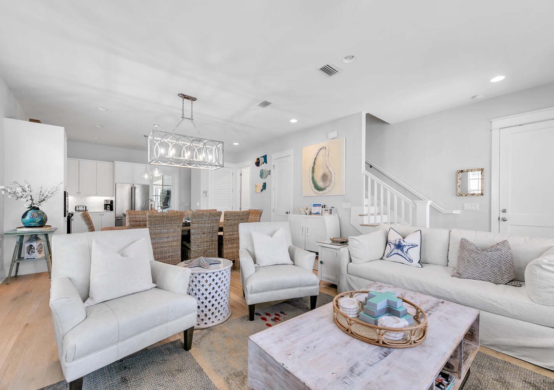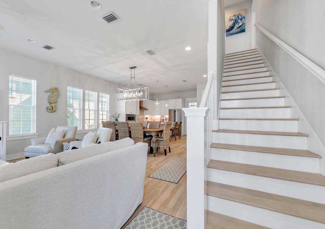 Situated in the beautiful Cypress Dunes community, just off the scenic Hwy 30A, This is Living is a stunning 5-bedroom, 3.5-bathroom home designed for those seeking the ultimate beach getaway. With its cozy atmosphere and ideal location, this vacation rental offers everything you need for a memorable escape to the Emerald Coast. Step inside to find a bright and spacious open-concept living area, complete with beautiful wood flooring that enhances the home’s warm and inviting ambiance. The layout is perfect for family gatherings, where everyone can come together to relax or entertain. The professional-grade kitchen features sleek quartz countertops and is fully equipped to prepare delicious home-cooked meals for your loved ones. Designed to accommodate up to 8 guests, this home offers a variety of comfortable sleeping arrangements for every member of the family. The first-floor Master Suite features a luxurious King-sized bed, while a second King Master Suite on the second floor offers extra privacy and comfort. The home also includes a Queen bed in the first guest bedroom, a Full bed in the second guest bedroom, and 2 Full-over-Full bunk beds in the third guest bedroom, providing plenty of space and flexibility for larger groups or families. Whether you’re lounging in the cozy living room, cooking in the well-appointed kitchen, or relaxing in one of the tranquil bedrooms, This is Living is the perfect place to unwind and enjoy all the best that beach living has to offer. Come experience why This is Living will quickly become one of your favorite vacation destinations.