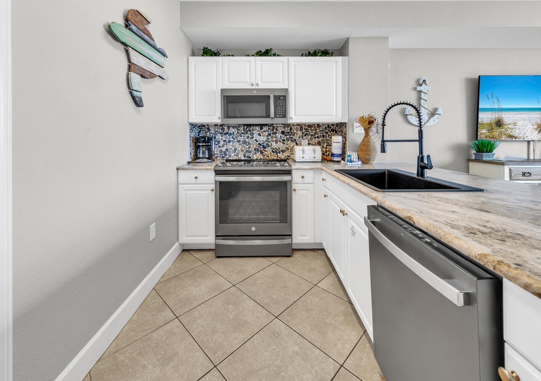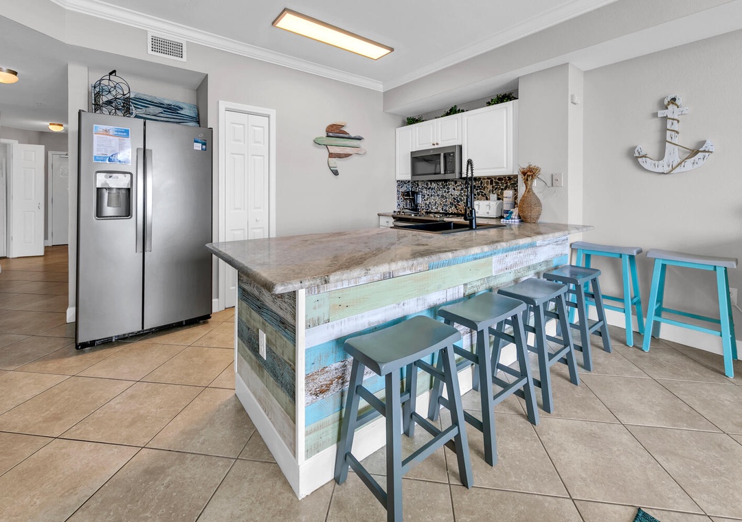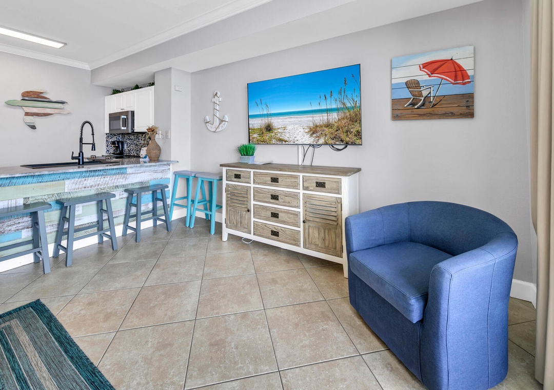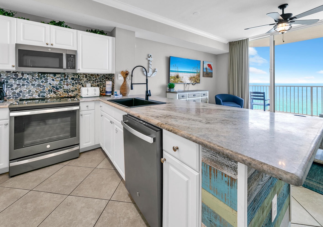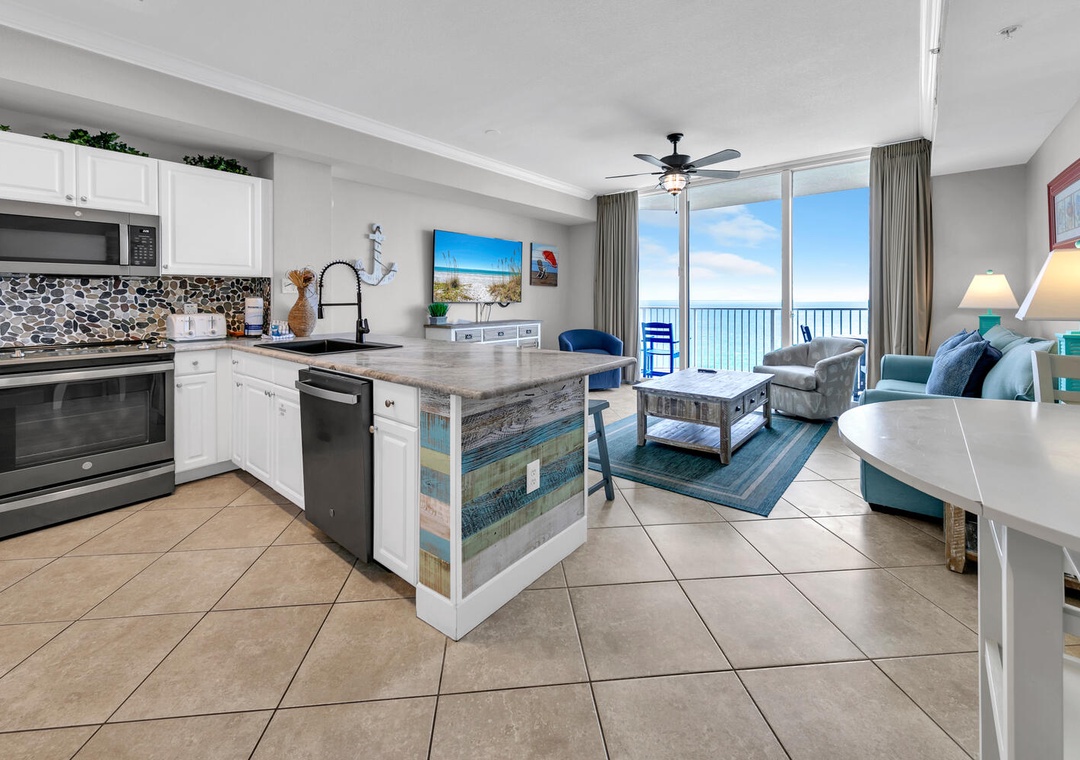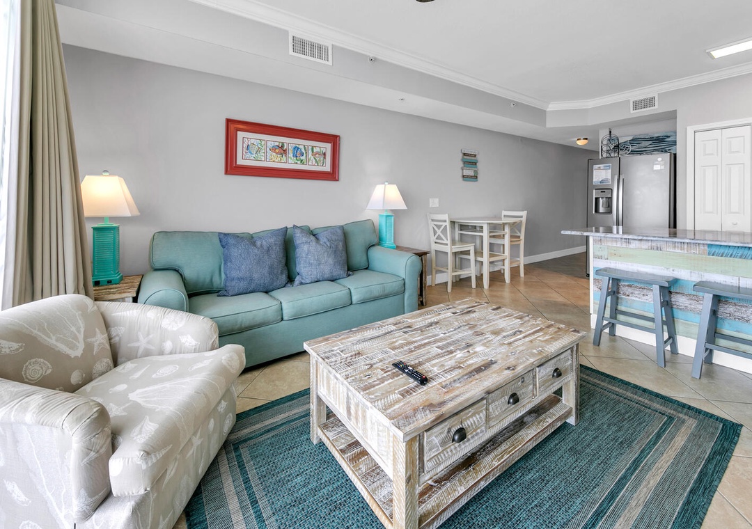 Treat yourself to a getaway at Tidewater 1916 is a stunning 1-bedroom 2-bathroom condo! A perfect vacation for a small family getaway. Listen to the sounds of the Gulf and let all of your cares float away with the gentle breeze. The master bedroom has a king bed and bunk room perfect for children with a twin over-twin bunk room and queen sleeper sofa in the living room. This condo sleeps 6 comfortably. Prepare anything from your morning coffee to your dinner in the well-equipped kitchen. Have breakfast sitting on the balcony enjoying the views. Come see why the fun never stops at Tidewater 1916!