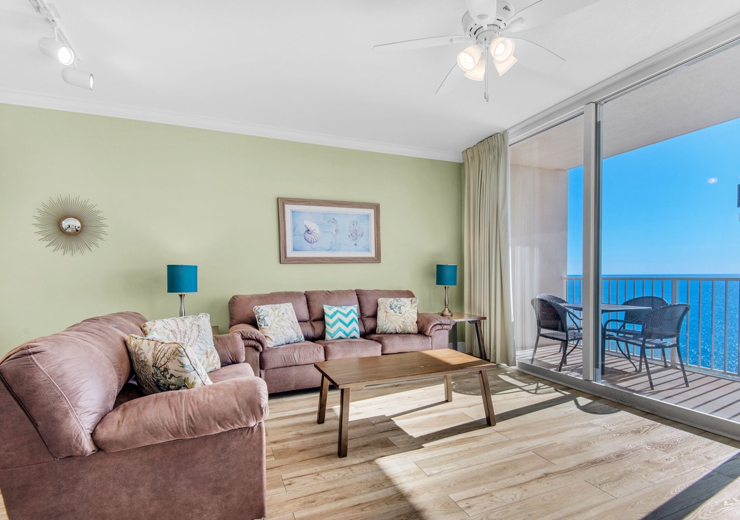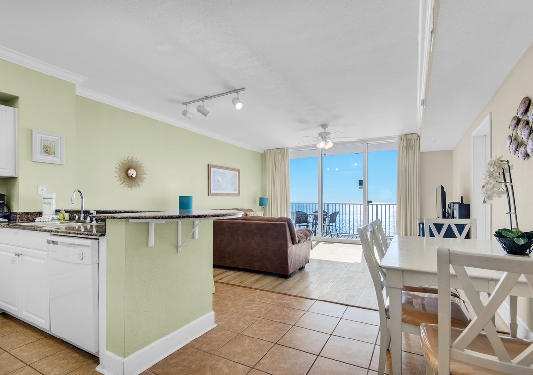 Tidewater 2115 features floor to ceiling Gulf FRONT views from the living room, kitchen, master bedroom, and balcony! Listen to the sound of the waves crashing on the shore from your balcony! This spacious 1BR+Bunks/2BA condo has an open floor plan with coastal chic décor, new living room furniture, and a fully equipped kitchen with granite countertops. The master bedroom has a king bed with a private bathroom and balcony access to view those gorgeous emerald green waters. There is also a twin bunk bed in the hallway alcove and a sleeper sofa in the living room, allowing for sleep accommodations for up to 6 guests. With all the amenities available at this incredible resort and located less than a mile from Pier Park, you're sure to have your dream vacation at Tidewater 2115!