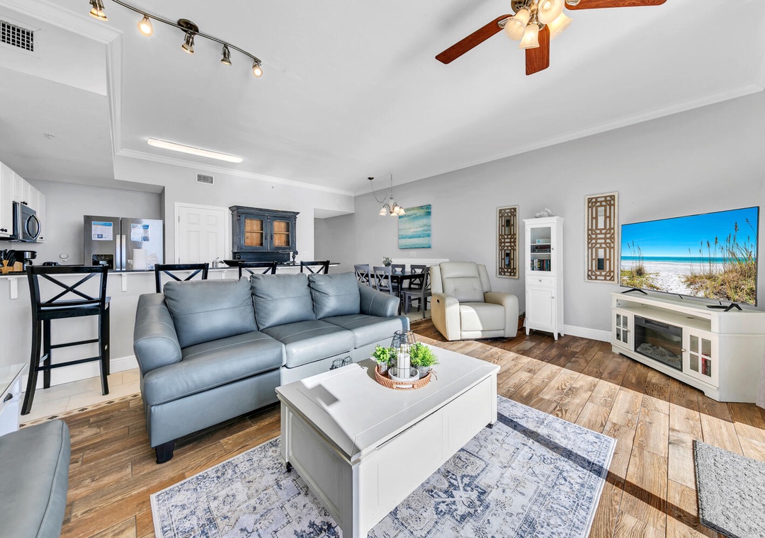 Tidewater 2604 - SunBeam Dreams features floor to ceiling Gulf FRONT views from the living room, kitchen, and balcony! Listen to the sound of the waves crashing on the shore from your balcony! This beautifully decorated and spacious 1BR+Bunks/2BA condo has an open floor plan with updated flooring throughout and sleek granite counters in the fully equipped kitchen. There 's a king bedroom with a private bathroom, twin over twin bunks in the hallway, and a sleeper sofa in the living room, sleeping up to 6 guests. With all the amenities available at this incredible resort and located less than a mile from Pier Park, you're sure to have your dream vacation year after year at Tidewater 2604 - SunBeam Dreams!