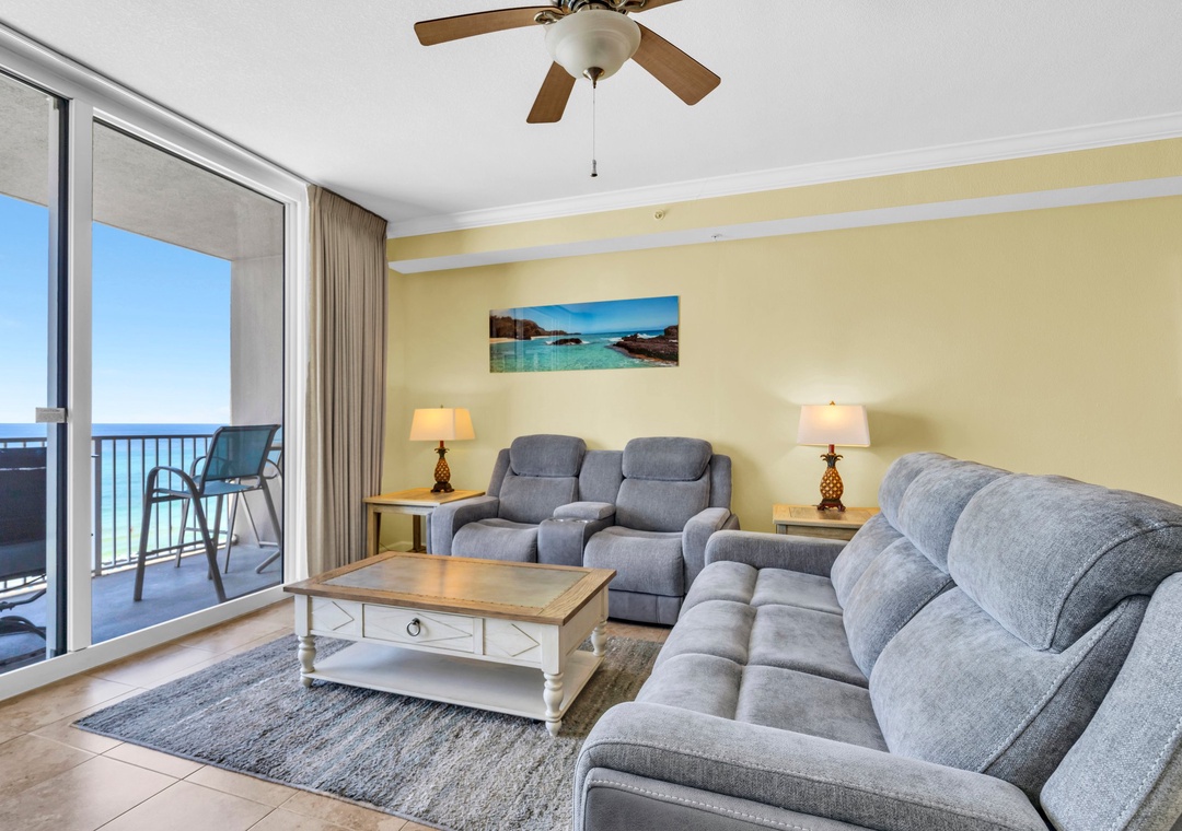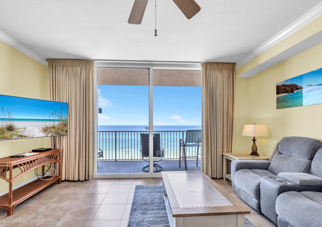 Step into this beautiful 2-bedroom, 2-bath condo and enjoy breathtaking floor-to-ceiling views of the Gulf from the living room, kitchen, and private balcony. Located on the 4th floor, this spacious unit features sleek tile flooring throughout and sleeps up to six guests comfortably.