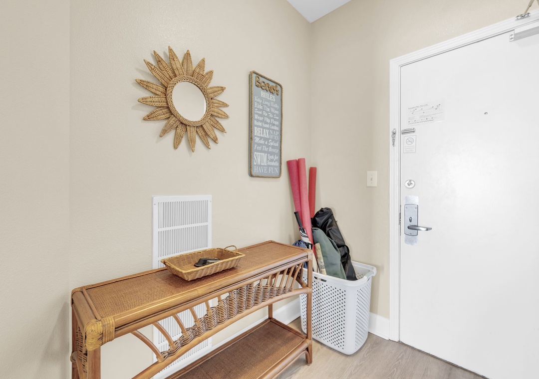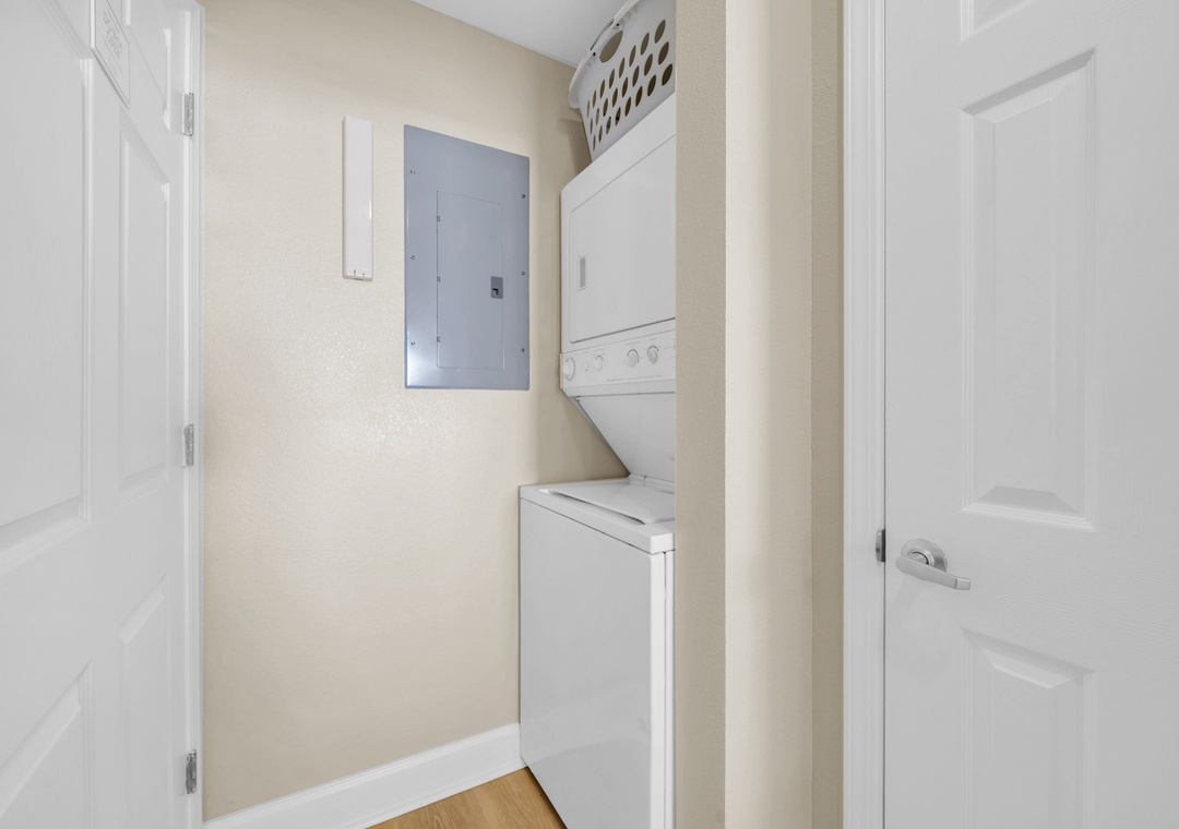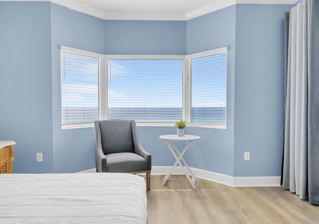 The master suite features a king-size bed and breathtaking ocean views, while the guest bedroom offers two queen beds, comfortably sleeping up to six guests. With an in-unit washer and dryer and smart storage, convenience meets comfort at every turn.