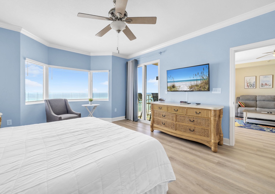 Imagine waking up to the sparkling emerald waters of the Gulf from your bed, sipping coffee in the sun-drenched bay-windowed master bedroom, and feeling the ocean breeze on your private balcony. Welcome to Tidewater 408, a fully remodeled 2-bedroom, 2-bath condo designed for unforgettable beach memories.