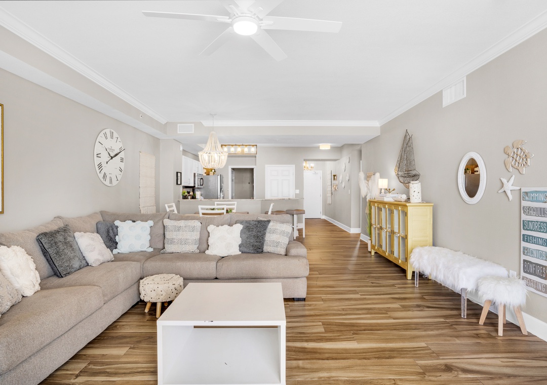 Stunning! Ideal condo! It was awesome from the moment we walked in the door (even before that with the great treatment from the Tidewater staff)… we were greeted with a special gift package from RealJoy to celebrate our 30th wedding anniversary sitting in the most beautifully decorated condo I’ve ever seen.
