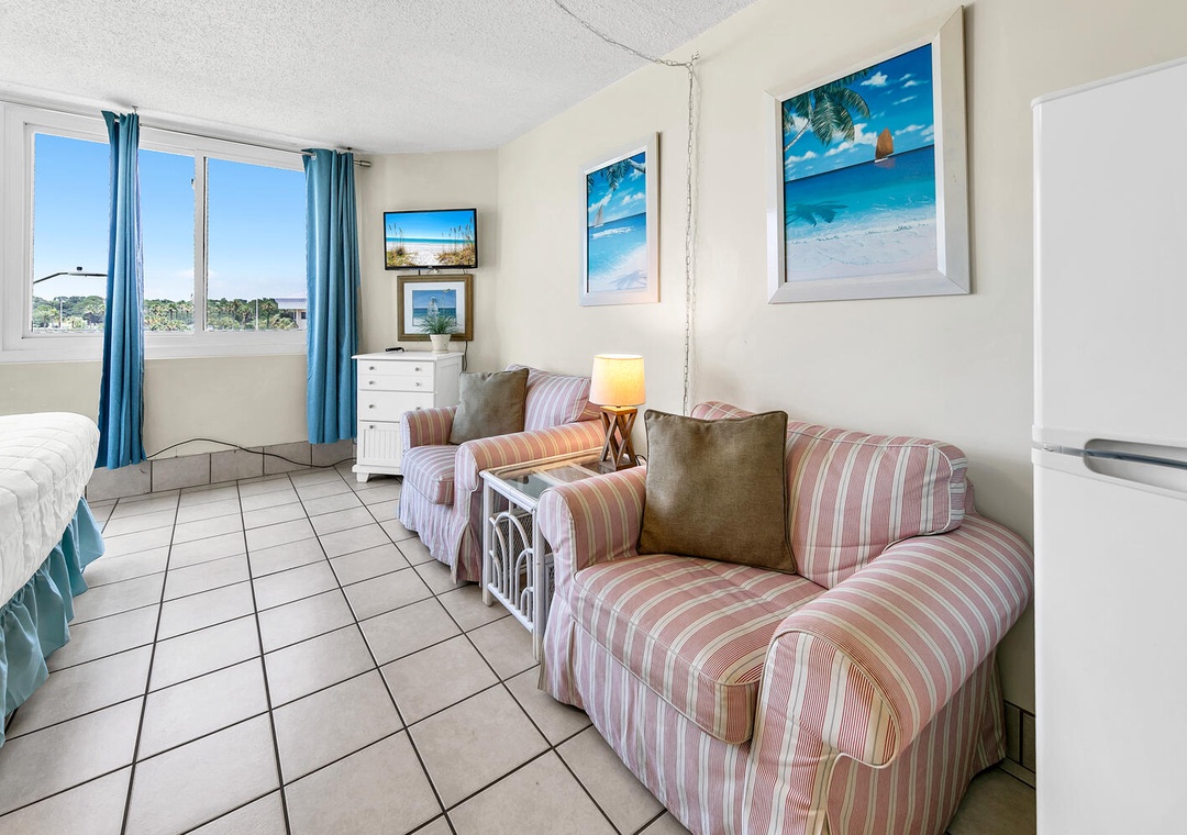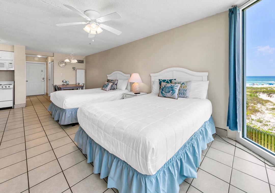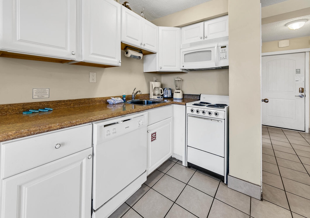 Treat yourself to a getaway at Top of the Gulf 324. This cozy condo features gulf views from large picture windows and is perfect for a small family or a romantic getaway. Guests will find two queen beds to allow up to 4 guests to sleep comfortably. A small kitchen is available for easy meals and includes a dishwasher for even easier cleanup. The living space includes a couch and a flat screen TV to relax after a long day in the sun. Take advantage of the on-site game room, shuffleboard, cornhole, large Adirondack chairs to relax in, and a small cafƩ. Your next vacation is waiting, and Top of the Gulf 324 will have you ready to come back year after year to make memories on the Gulf Coast.