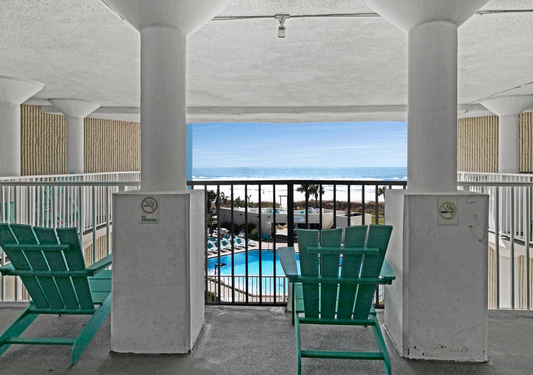 The Top of the Gulf complex's game room boasts a pool table and a foosball table. The pool area features a shuffleboard court that also offers cornhole boards. A large swing and an oversized Adirondack chair add to the beachy atmosphere, and the internet cafe is poolside with dedicated Wi-Fi internet in a shaded space. Top of the Gulf features immaculate landscaping, pristine beachside amenities, and a gorgeous pool (with a kiddie pool) where personal chairs and coolers are welcome. Grills are also provided for personal use. The onsite Surf Snack Shack offers grill items, drinks, smoothies, and other goodies.