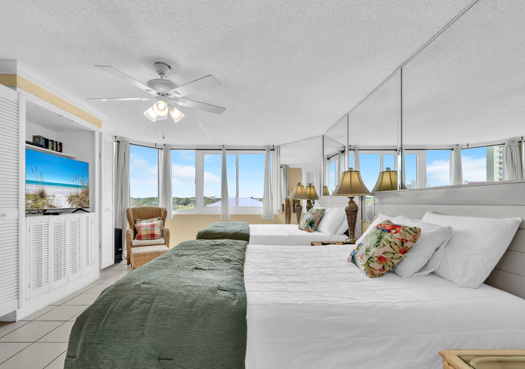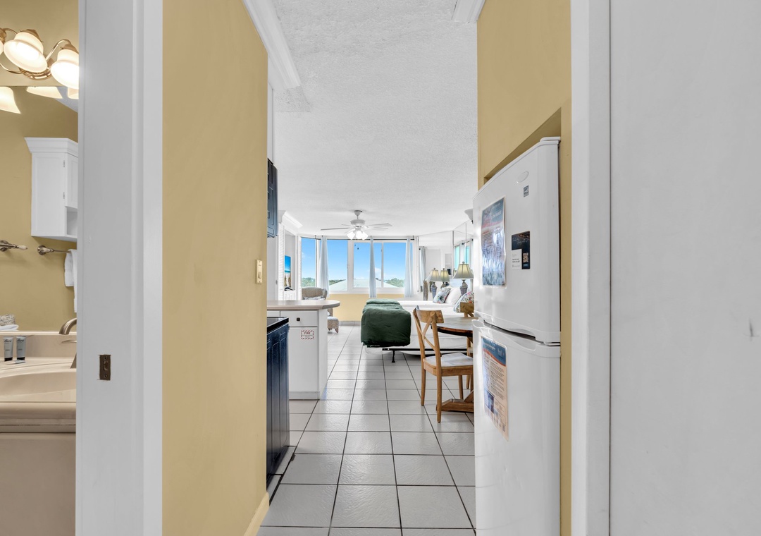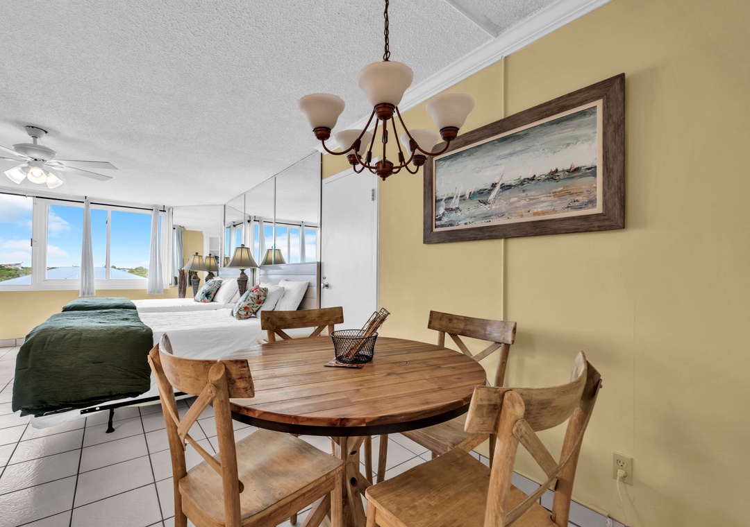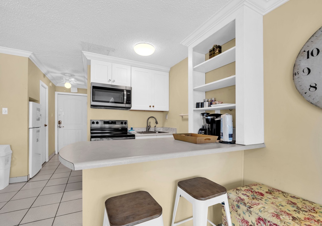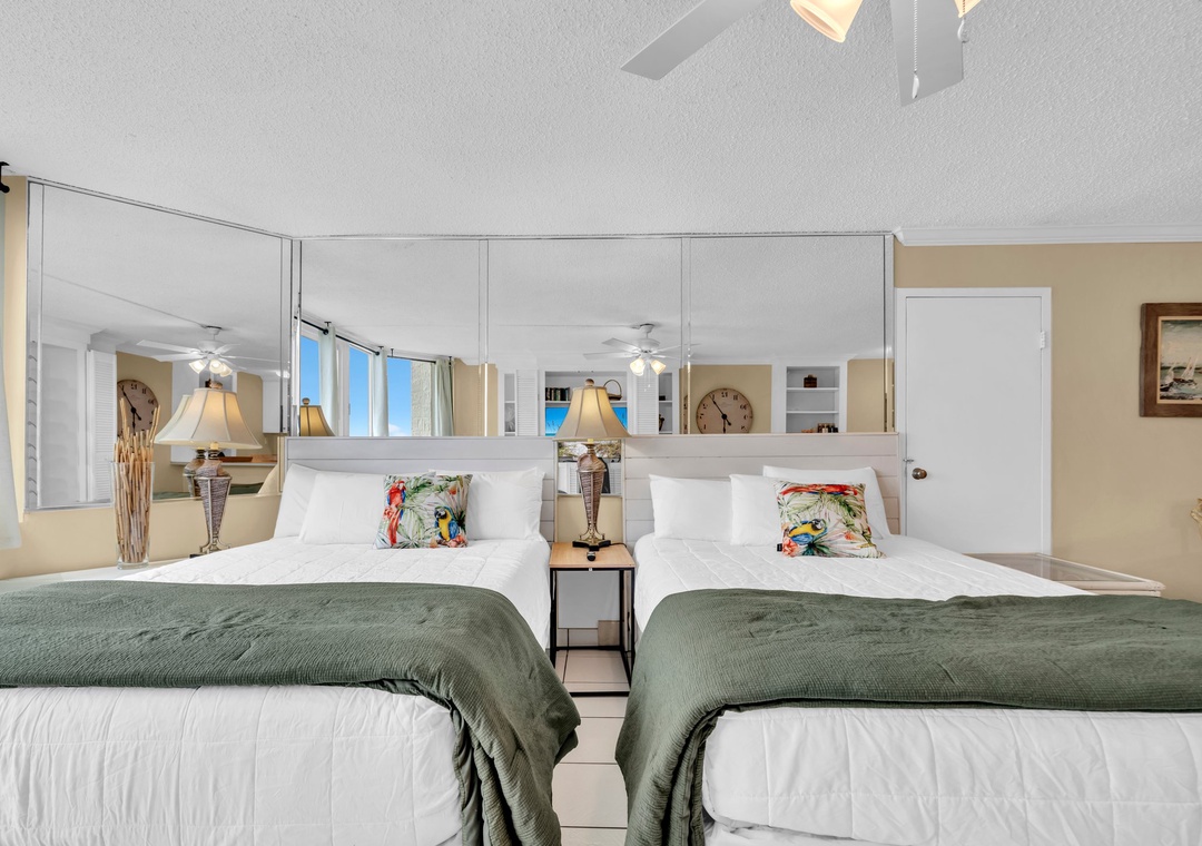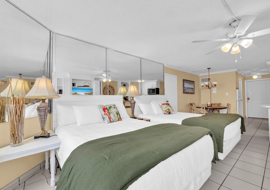 Kick off your shoes at Top of the Gulf 610. This cozy studio has large windows overlooking the pool and the Gulf of Mexico. Offering two comfortable queen beds to sleep up to 4 guests, it is a perfect space for couples or small families. The open kitchen has everything you need to whip up an amazing meal with plenty of counter space for meal prep. A dining table is available to enjoy your delectable meal or as a laptop-friendly area while you work remotely. Guests will find a community laundry facility on the first floor. Your next romantic getaway or family vacation is waiting, and Top of the Gulf 610 will have you ready to come back year after year to make memories on the Gulf Coast.