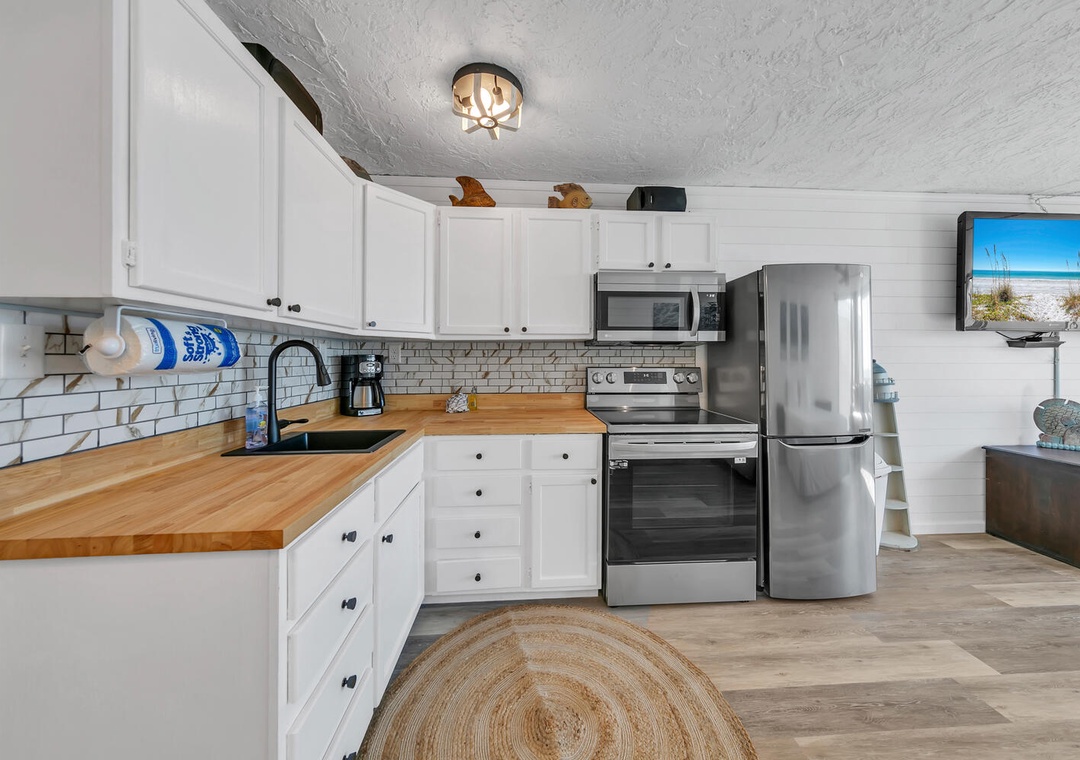 Top of the Gulf 811 is perfect for a romantic getaway and a chance to relax and recharge. Offering a queen bed, a queen sleeper sofa, and sleeping up to 4 guests. The open kitchen has everything you need to whip up an amazing meal with plenty of counter space for meal prep. A dining table is available to enjoy your delectable meal or as a laptop-friendly area while you work remotely. The large windows make this the perfect condo to enjoy Gulf views from the comfort of the living room. Your next getaway is waiting, and Top of the Gulf 811 will have you ready to come back year after year to make memories on the Gulf Coast.