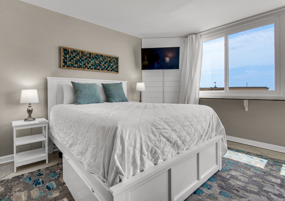 My third stay at Top of the Gulf and the best unit so far! Bright and clean, comfortable bed (pillows not so much) and perfect view of the beach and the ocean. I loved being on the top floor. I love the big picture window. I chose this unit because one window is operable, but alas, too much wind and rain, so I kept it closed. I will book this again if I ever get the chance.- Reviewed On: 7/30/2022