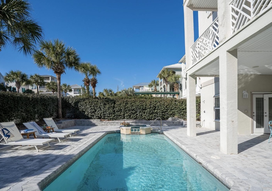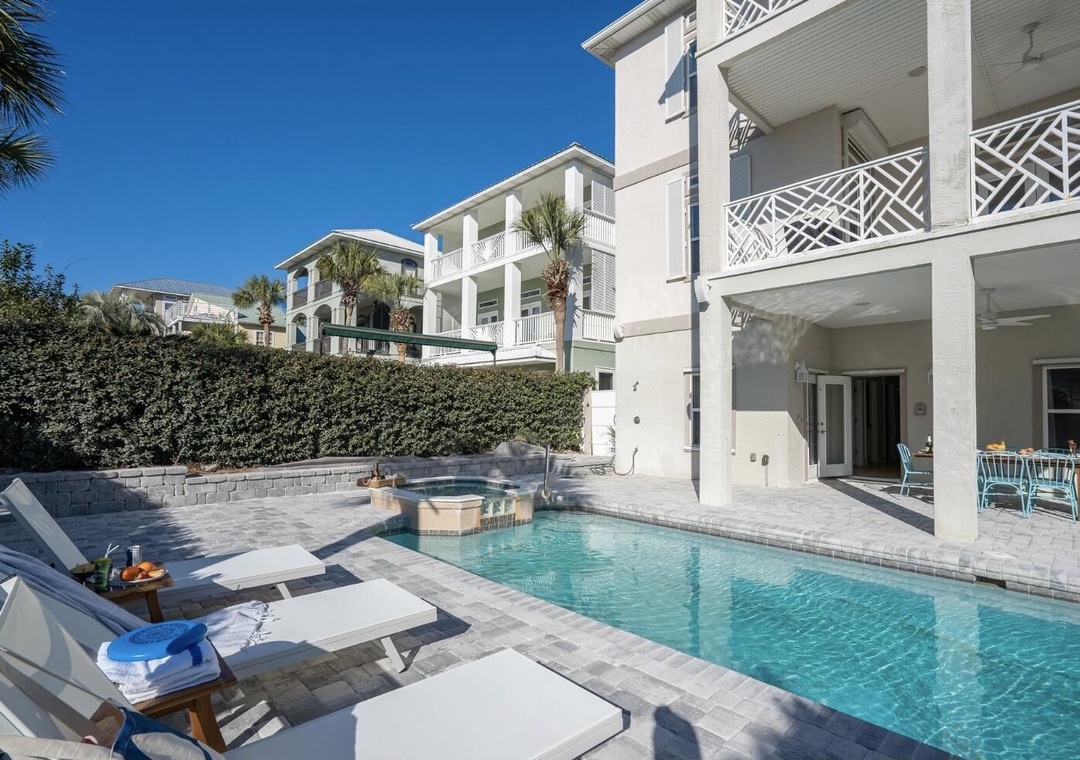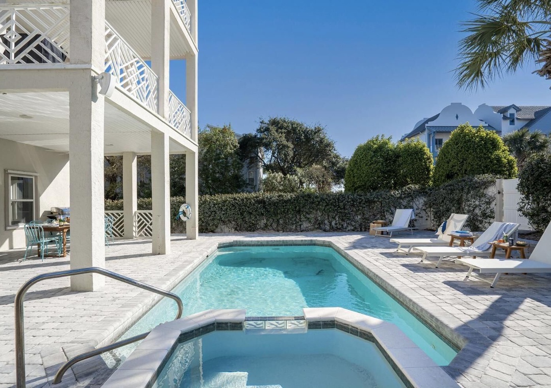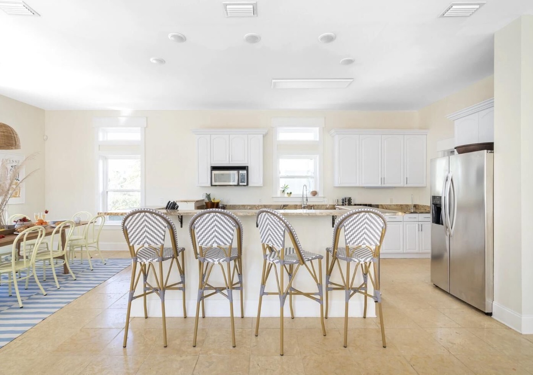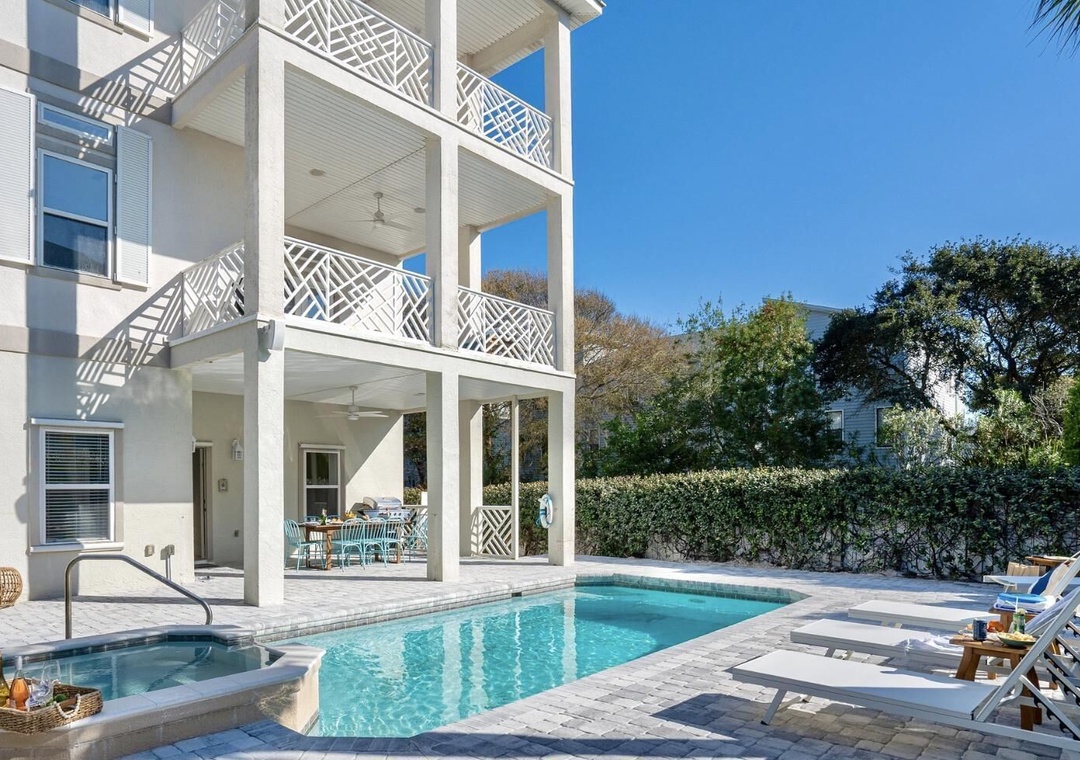 Welcome to your coastal getaway at Topsail! This beautiful 6-bedroom, 4-bathroom home is just steps from the beach and bathed in natural light—offering everything you need for a relaxing and memorable seaside escape. Inside, you'll find a fully equipped chef’s kitchen, perfect for preparing meals to share with family and friends. The home features a spacious master bedroom with a king bed, a second king guest room, a queen guest room, and three additional guest rooms—including two with twin bunk beds, ideal for kids or extra guests. This lovely home also welcomes pets, max 2 dogs. For moments of connection and nostalgia, enjoy thoughtful touches like a record player, a collection of vinyl, and classic board games—creating the perfect atmosphere for cozy evenings and unplugged fun. Outside, expansive balconies offer generous lounge space overlooking the private pool, inviting you to soak in the sunshine, sea breeze, and good company. Come make unforgettable memories at Topsail—your perfect beach retreat awaits!