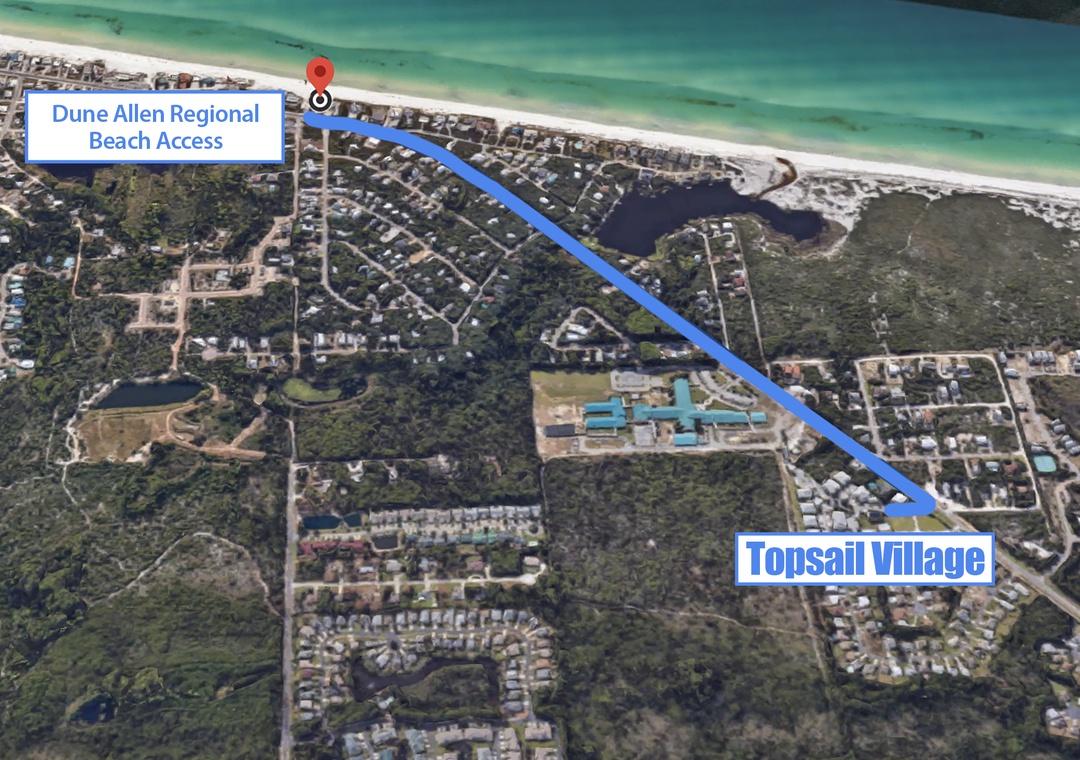 Topsail Village 211- Sandy Feet Retreat is located on the west side of 30A where you'll find the world's most beautiful white sand beaches with beach access only 1.2 miles away at Dune Allen Public Beach access! Avoid the crowds and just relax in the community pool. Enjoy the state parks, coastal dune lakes, and 19 miles of scenic bike trails that are so convenient along 30A.