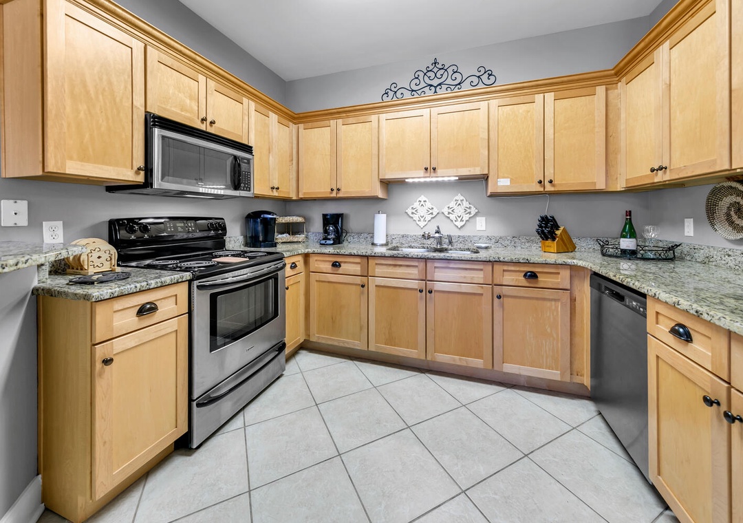 Mary, We're pleased to hear that you felt safe and secure in this condo and that you found the kitchen well-equipped with everything you needed. Your comfort and satisfaction are important to us, and we're glad you enjoyed your time in the area. We'd be thrilled to have you stay with us again. Thank you for choosing RealJoy.Real Joy staff