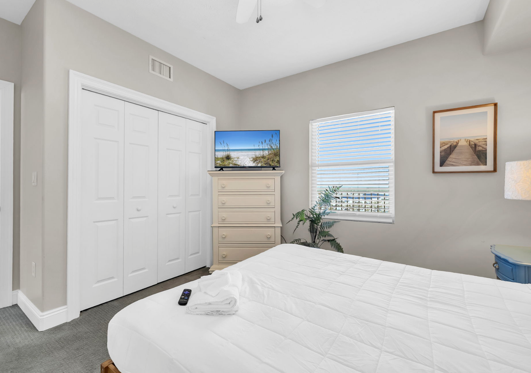 The room was nice as advertised. The view was gorgous!! Love having the sliding glass door in the bedroom overlooking the Gulf! If I had any suggestions, I would recommend to touch up all the doors and baseboards. They are worn from cleaning and everyday use. Easy fix to give it a fresh clean look! Enjoyed the new couch while relaxing and watching television! I would suggest bringing a ROKU or Firestick for more channel options since free internet is provided! Bed was pretty comfy, a bit softer than what I'm used to, but I must say, I do enjoy a big king size bed! Overall great place, would definitely stay again, and would recommend to others!! Thanks for great vacation accommodations!- Reviewed On: 10/6/2023