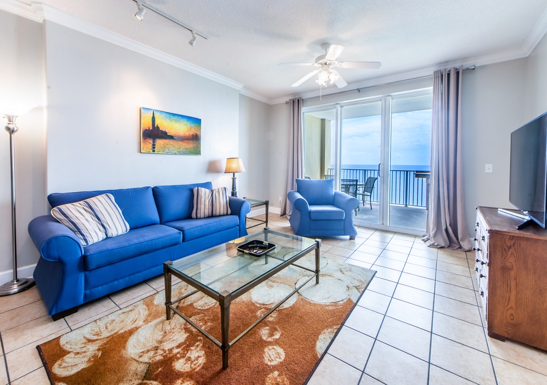 Tropic Winds 2308 is a beachfront, penthouse condo on the western end of Panama City Beach! This condo has 2 bedrooms and 2 baths, including a queen bed in the master bedroom, a queen bed in the guest bedroom, and a sleeper sofa in the living room, sleeping up to 6 guests comfortably! Tropic Winds 2308 has a fully equipped kitchen with stainless steel appliances, tile flooring in the main living area, and a Gulf Front master bedroom! See miles down the beach from the large, top-floor balcony with endless views. Come see why Tropic Winds 2308 is a Panama City Beach favorite!