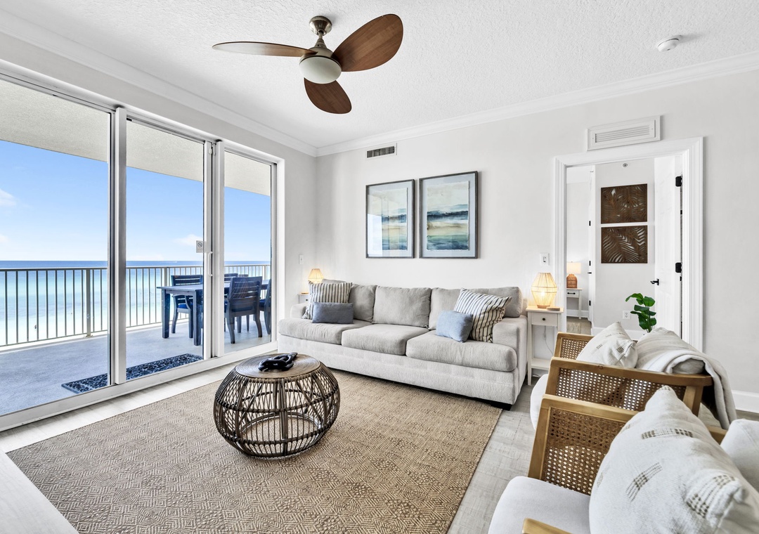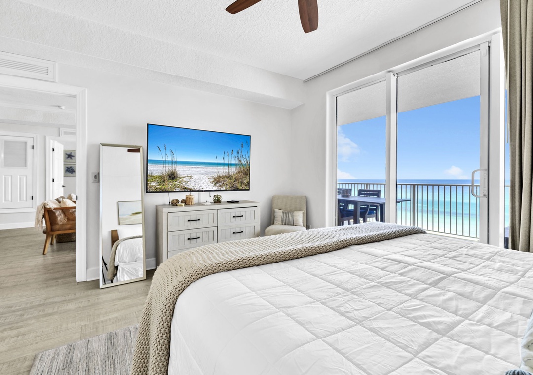 Welcome to Your Dream Getaway at Tropic Winds 503! This stunning 3-bedroom, 3-bathroom condo offers sweeping panoramic views and the perfect blend of comfort and style—an entertainer’s paradise! Step into a beautifully decorated coastal retreat with a spacious, open layout. The fully equipped kitchen makes it easy to prepare delicious meals, with plenty of seating at both the dining table and breakfast bar for everyone to gather. Start your mornings with coffee on the oversized balcony as you soak in the breathtaking views. The king-size master suite features private balcony access and a luxurious en suite bathroom. Guest Bedroom 1 includes a queen bed, its en suite bath, and balcony access. Guest Bedroom 2 offers two queen beds, and a sleeper sofa in the living room brings the total sleeping capacity to 10. As a guest at Tropic Winds, you’ll enjoy direct beach access and fantastic amenities that everyone will enjoy. Whether you're here to relax or explore, Tropic Winds 503 is where unforgettable memories begin. Come see why the fun never stops!